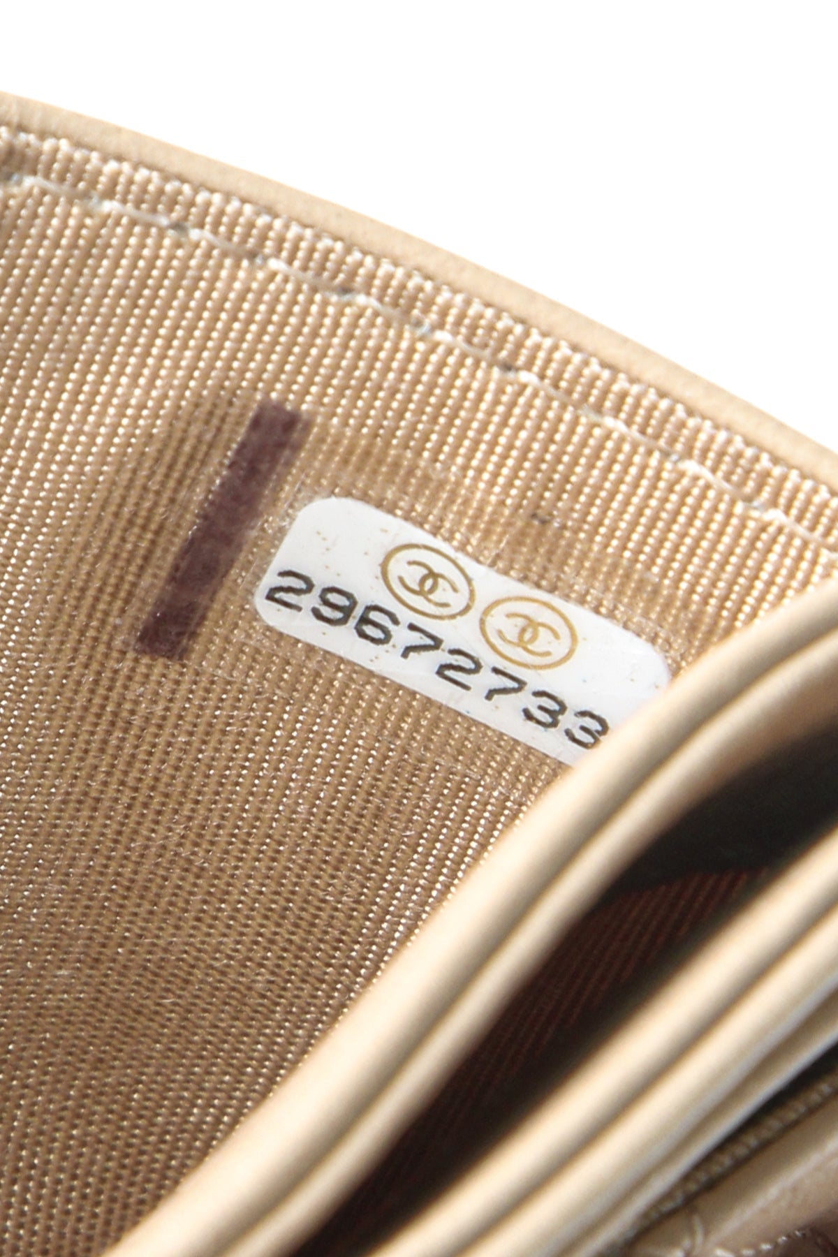 Petite meets polished in this Chanel Boy card holder. In this pretty piece, a beige caviar leather silhouette is enhanced by a gold-tone CC Boy lock detail. This little card holder effortlessly stores your cards and slips into any bag with no problem!