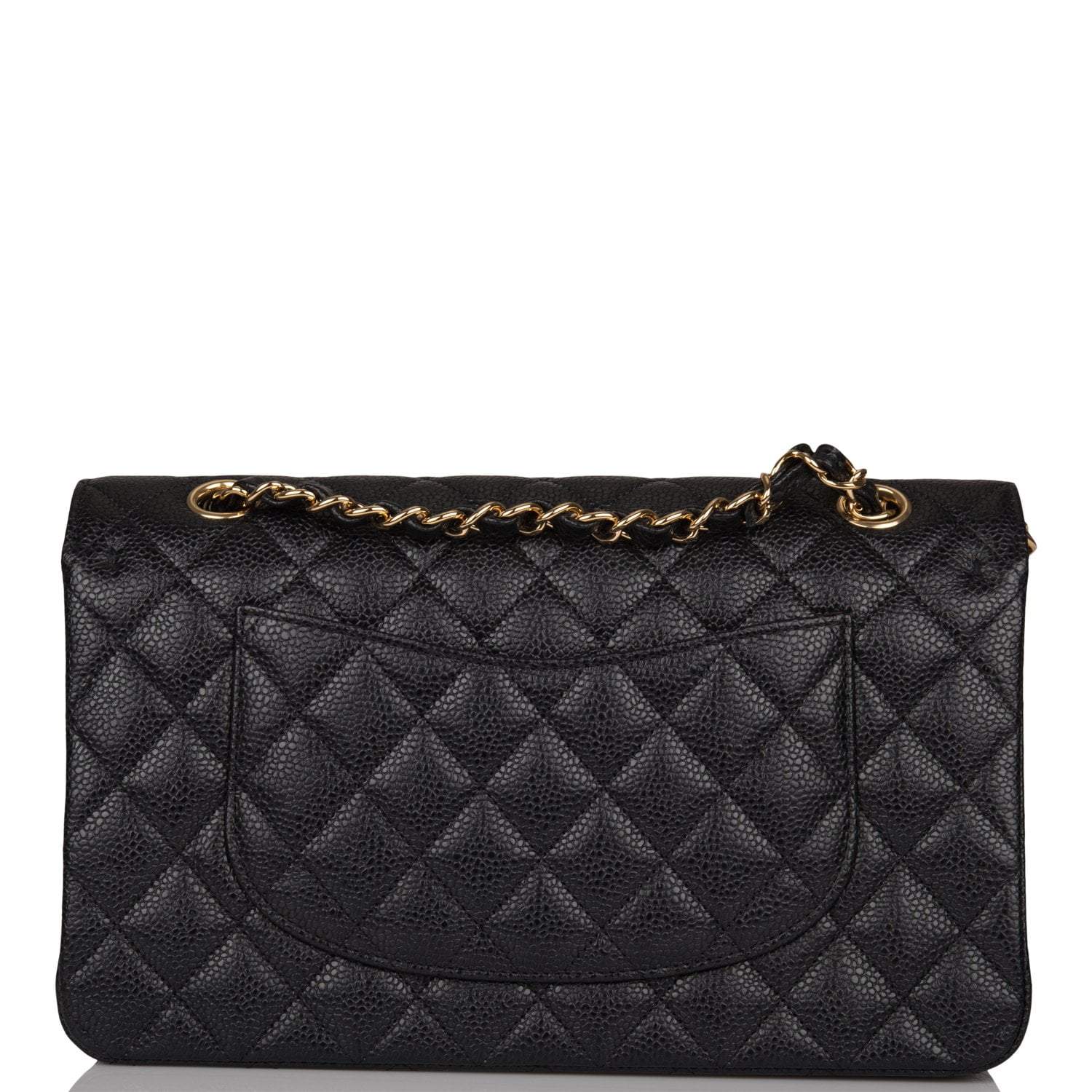 Chanel Black Quilted Caviar Medium Classic Double Flap Bag Gold Hardware