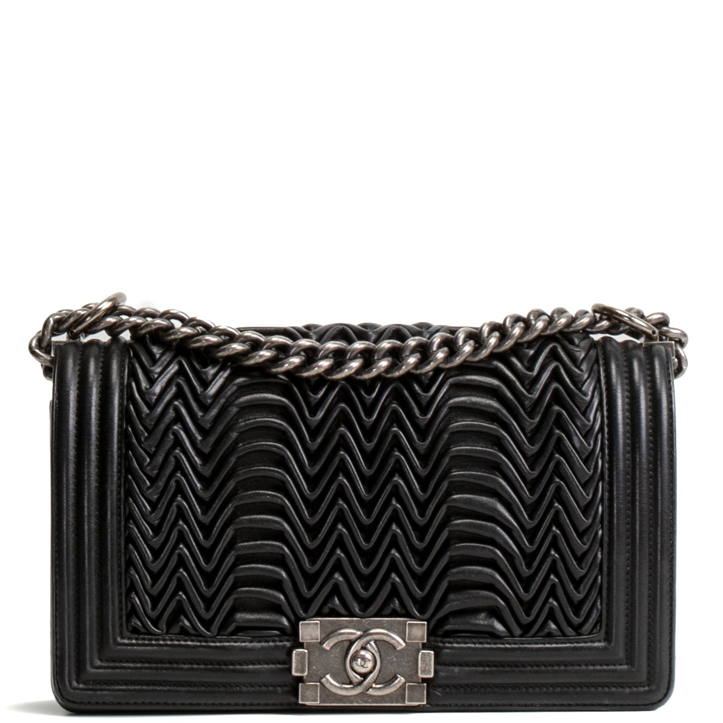 - Authentic Chanel 3D Pleated Medium Boy Bag - Black
