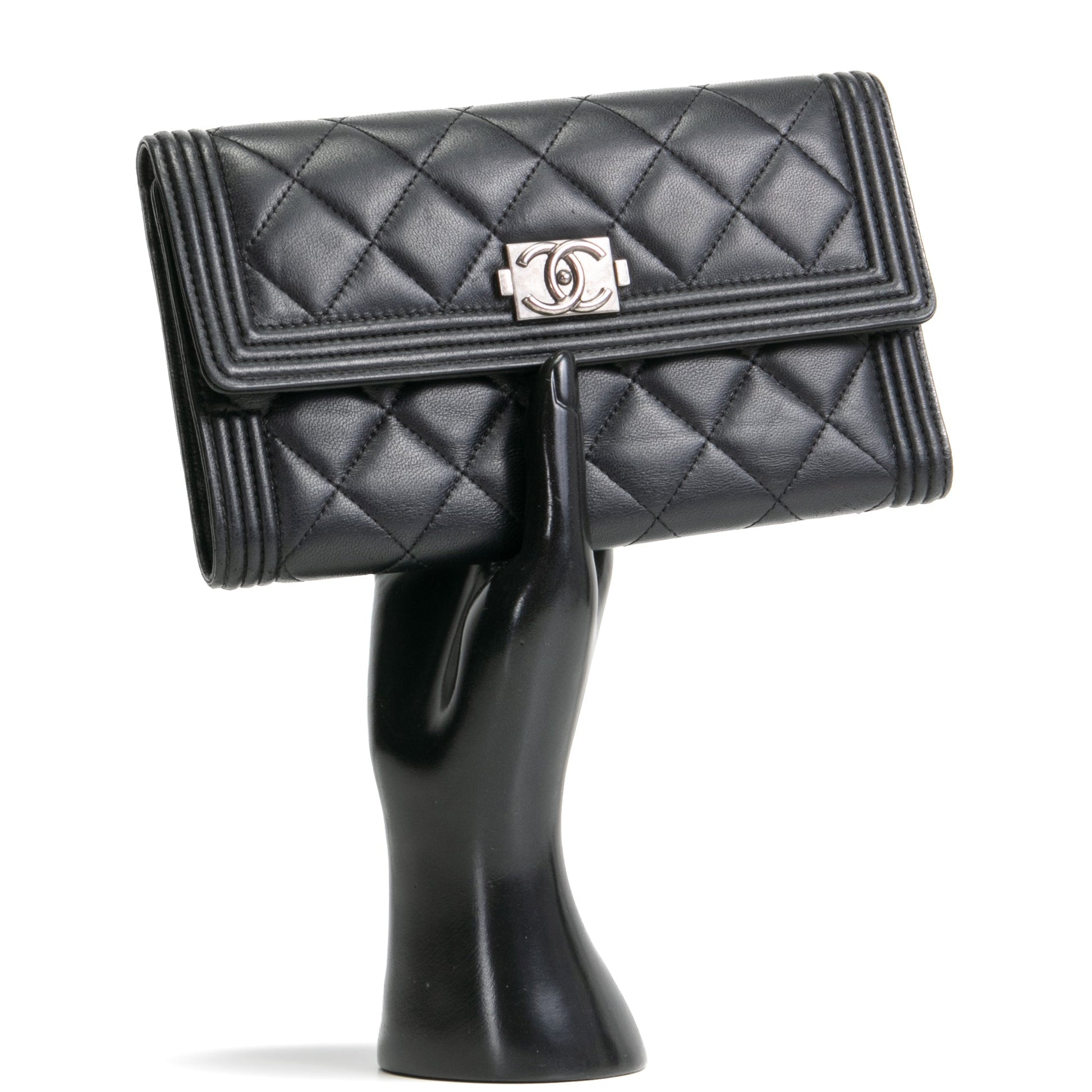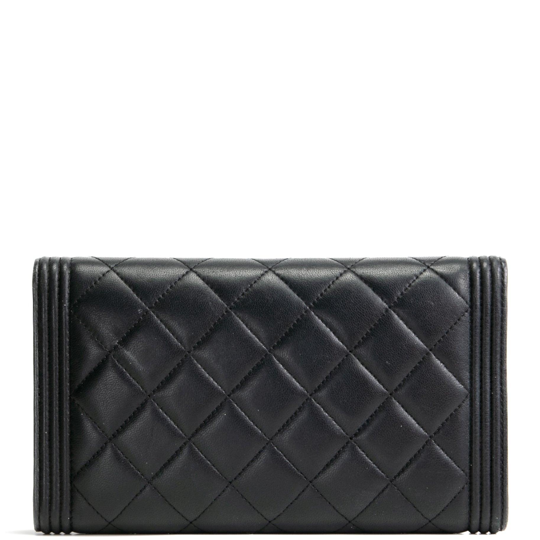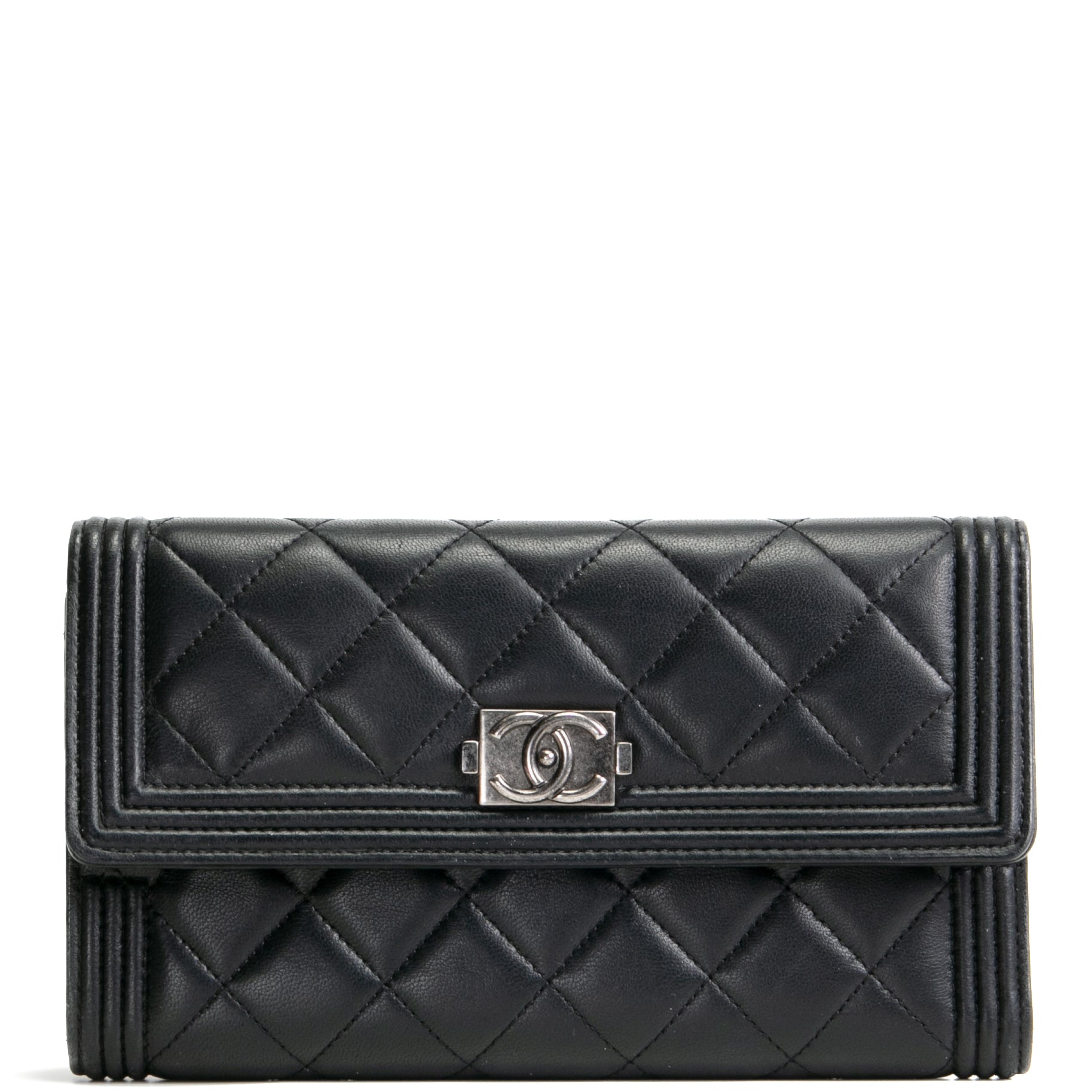 - Authentic Chanel Quilted Lambskin Boy Flap Wallet - Black