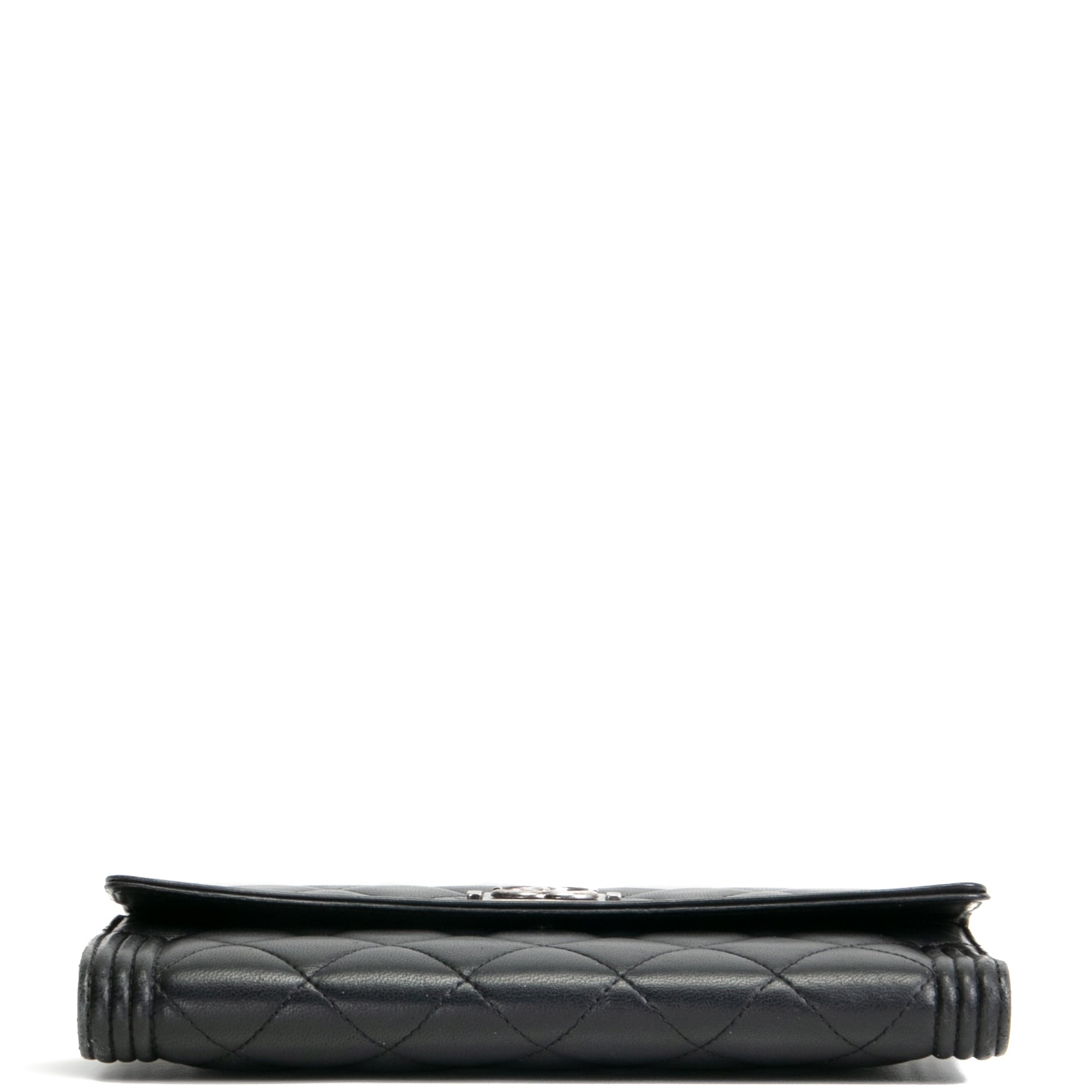 CHANEL Quilted Lambskin Boy Flap Wallet - Black