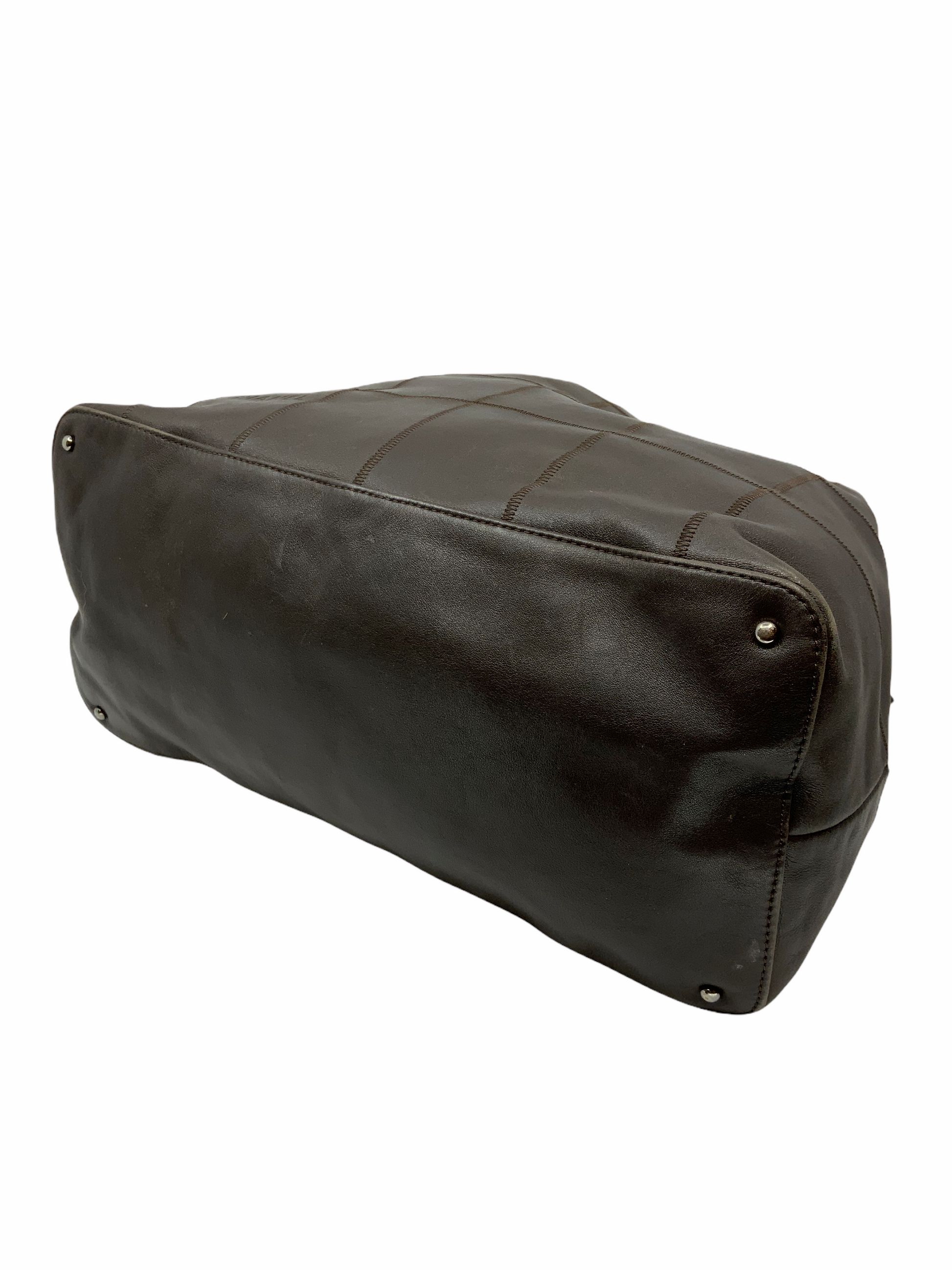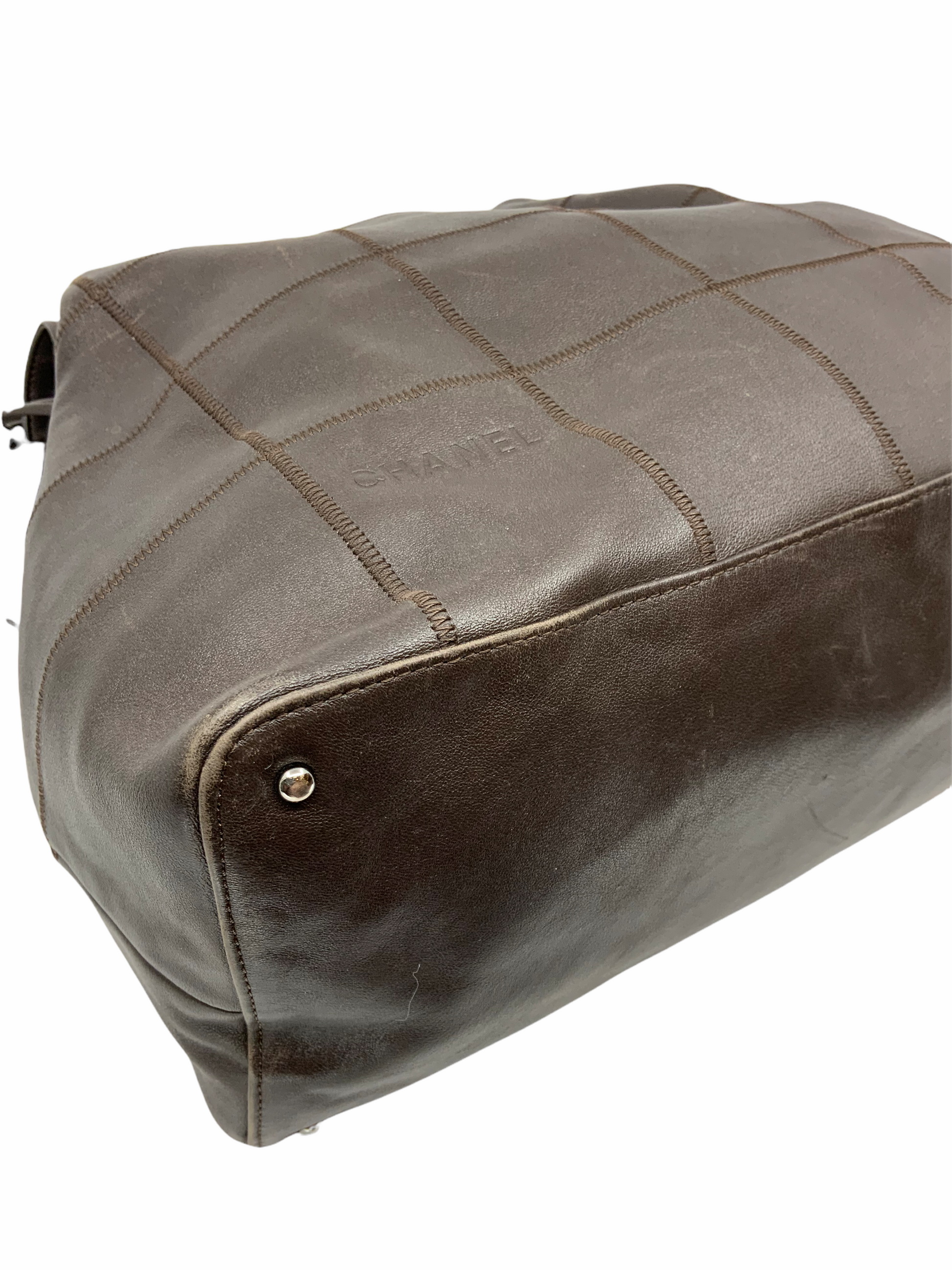 - Brown squared stitched calfskin