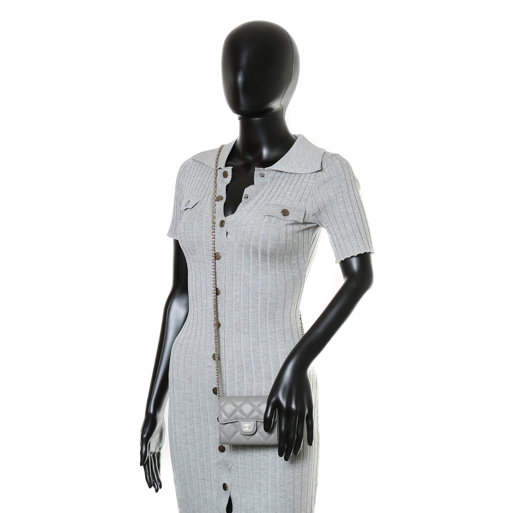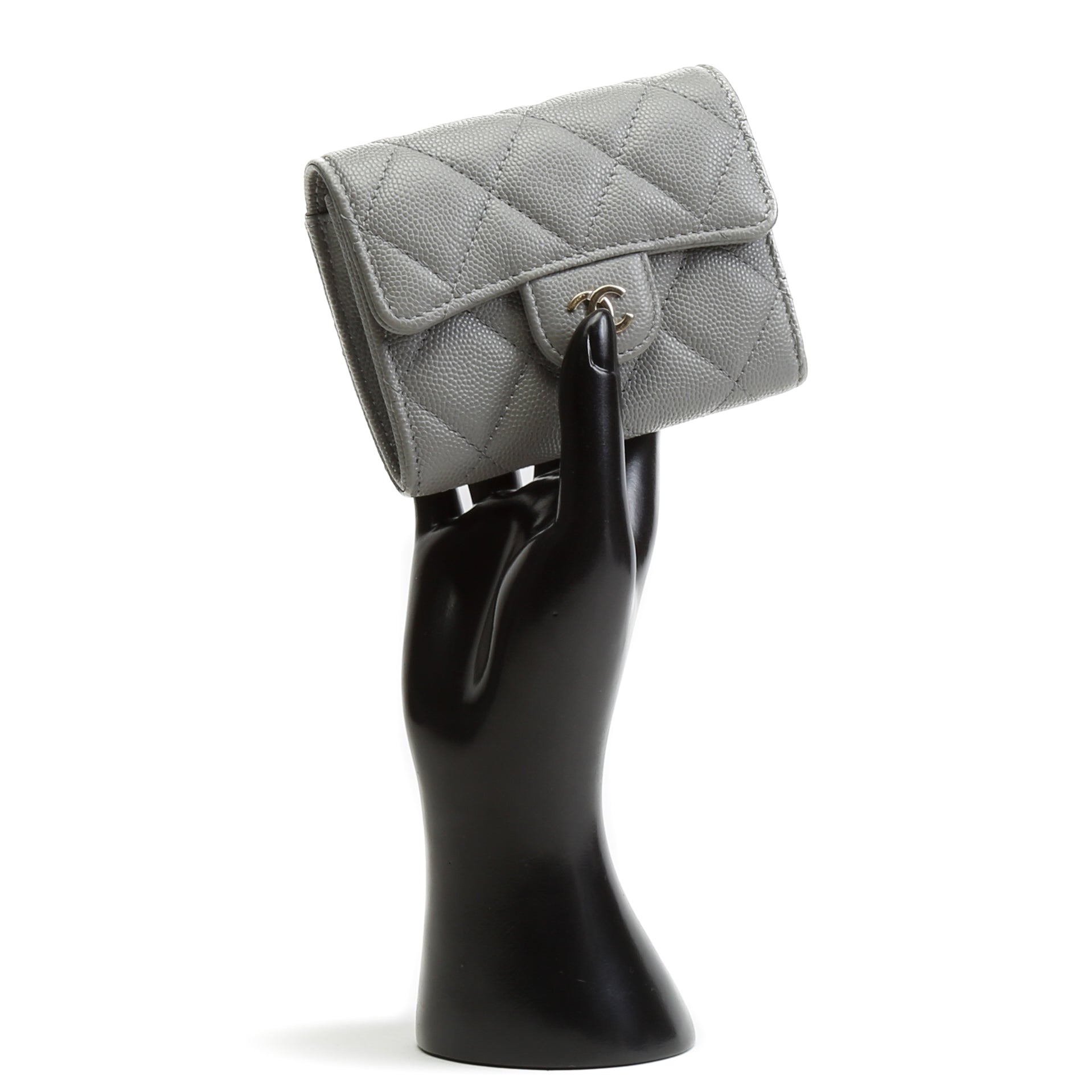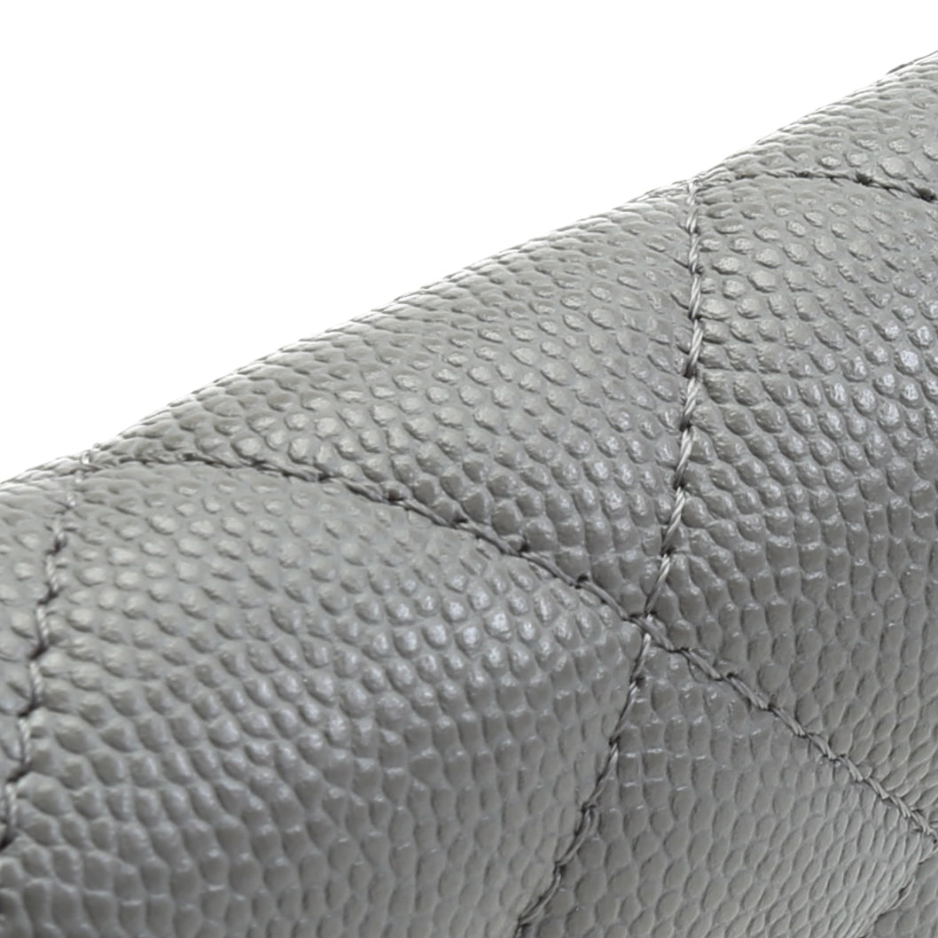 CHANEL Caviar Flap Card Holder On Chain - Gray