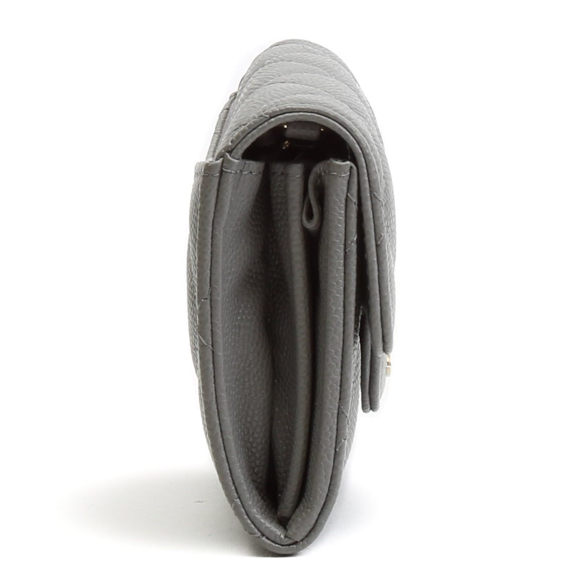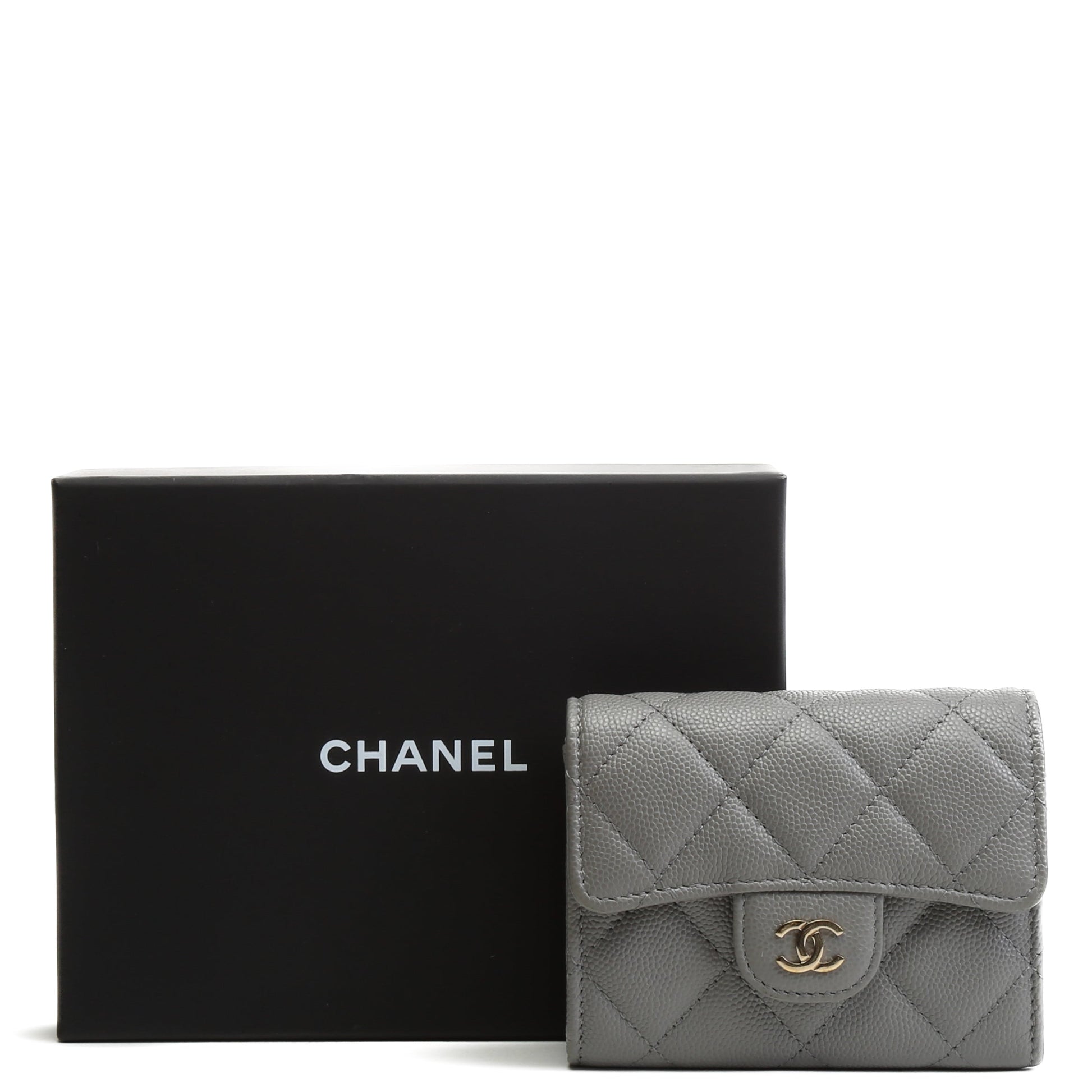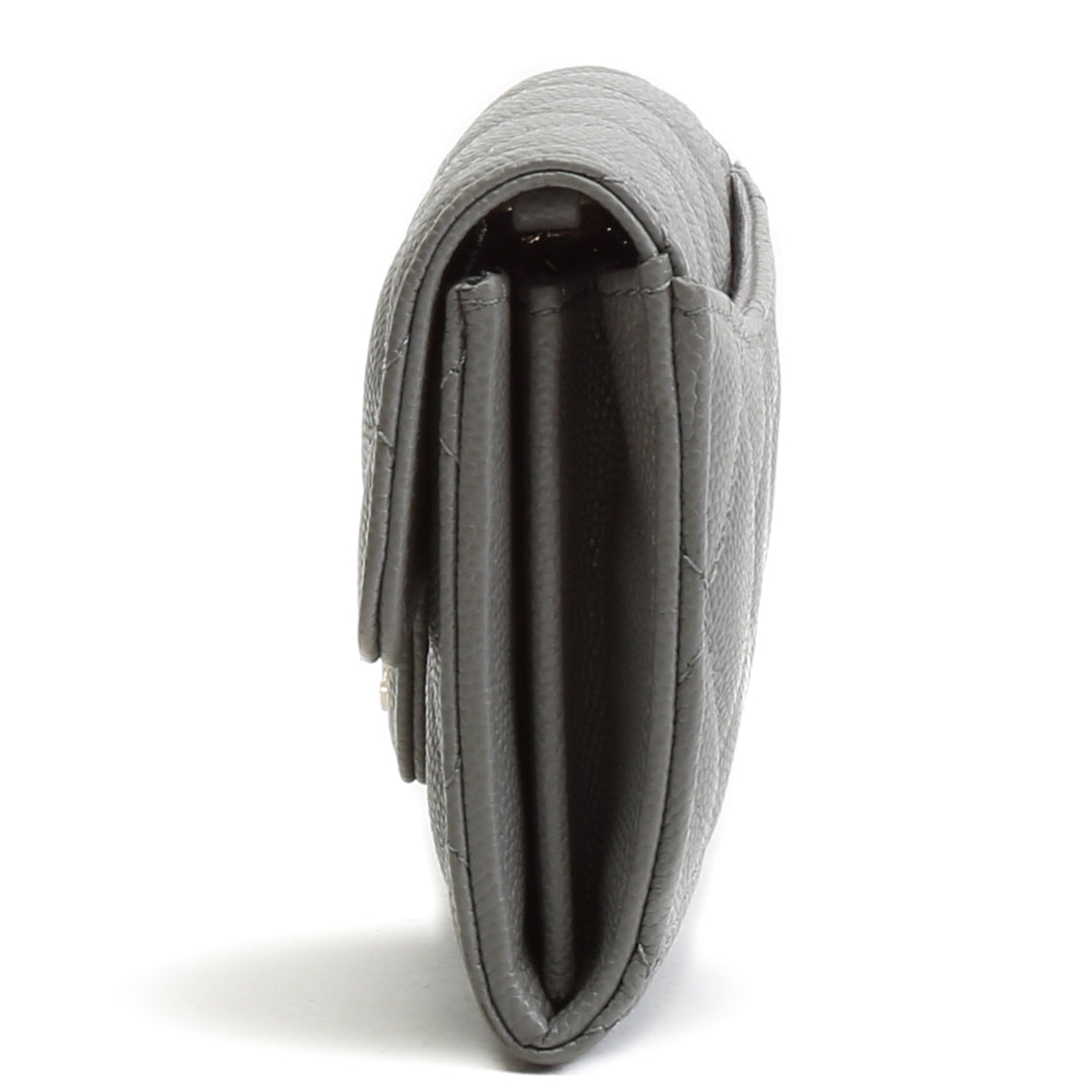 CHANEL Caviar Flap Card Holder On Chain - Gray