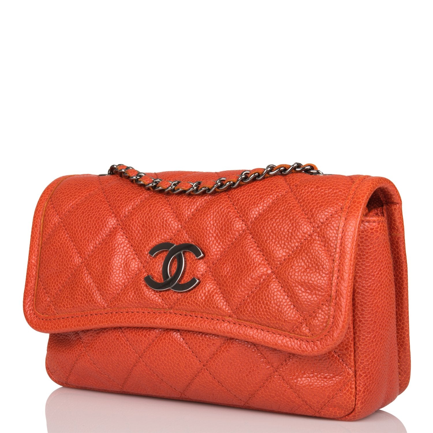 Chanel Mini Flap Bag Dark Orange Caviar Ruthenium Hardware