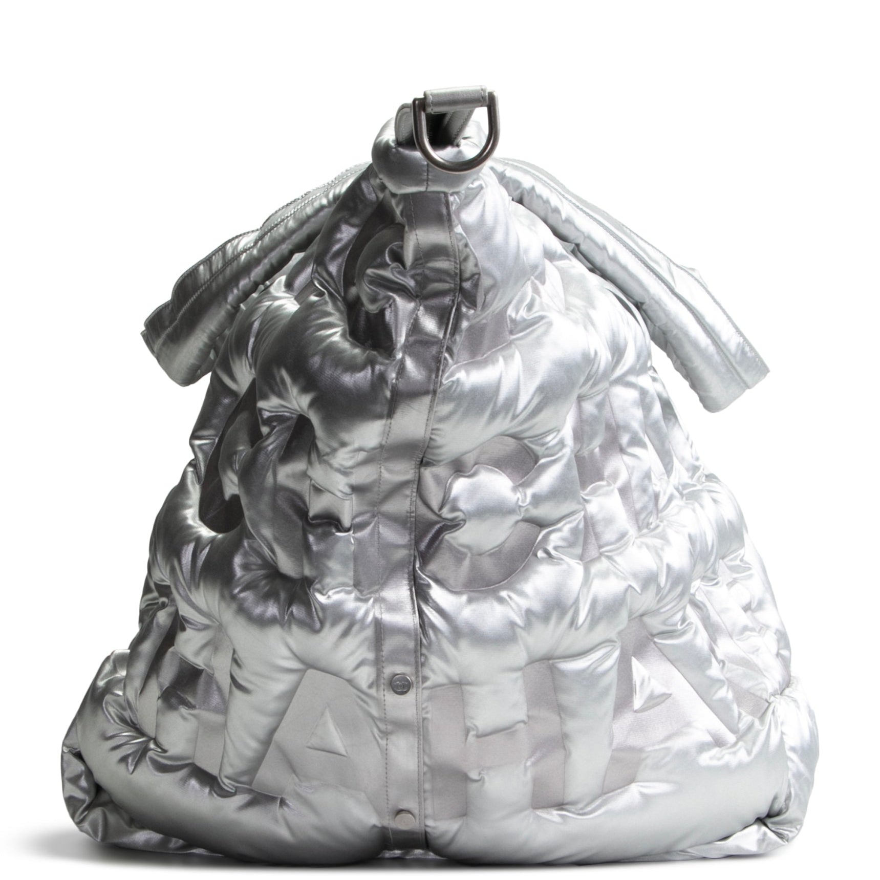 CHANEL Doudoune Tote Embossed Nylon Large- Metallic Silver
