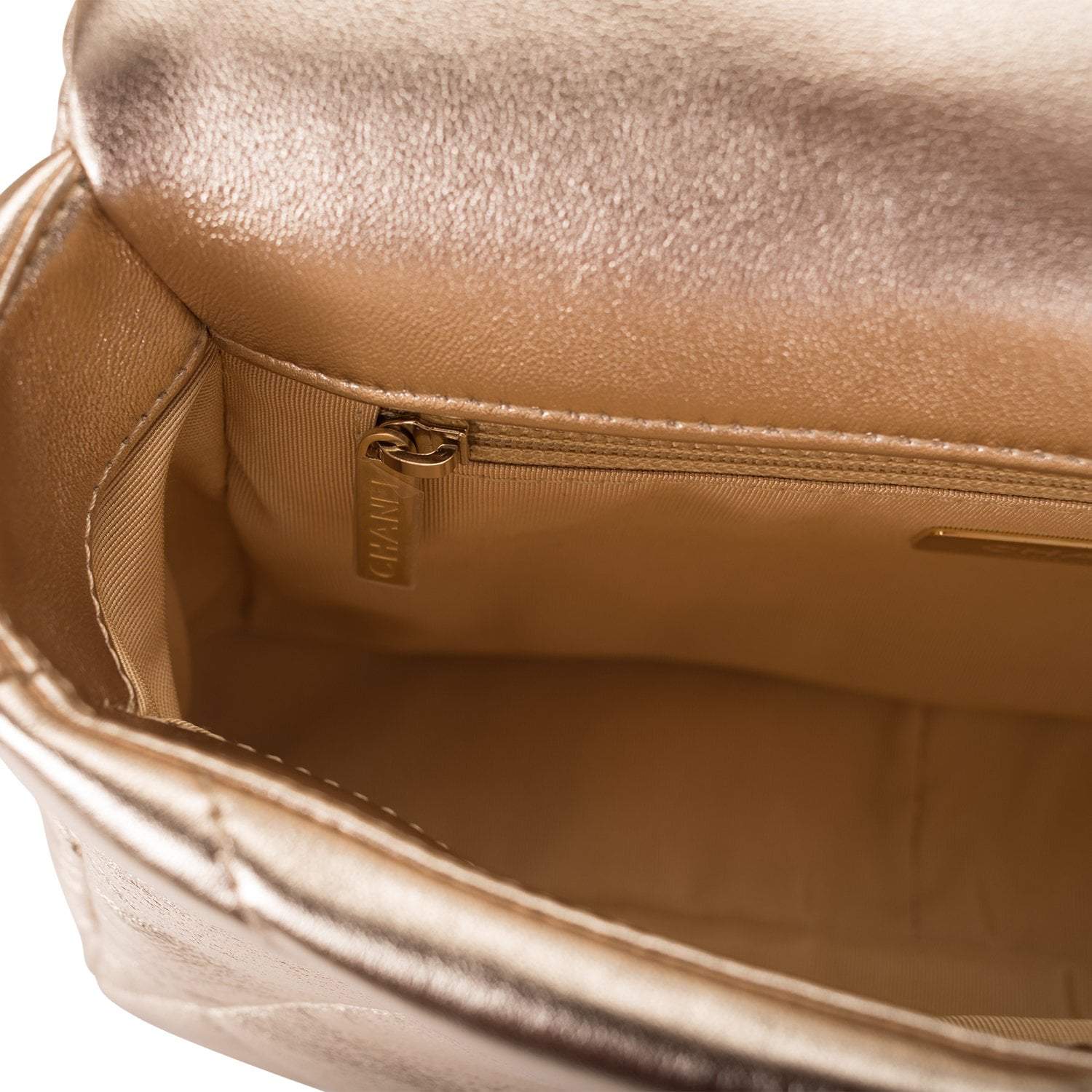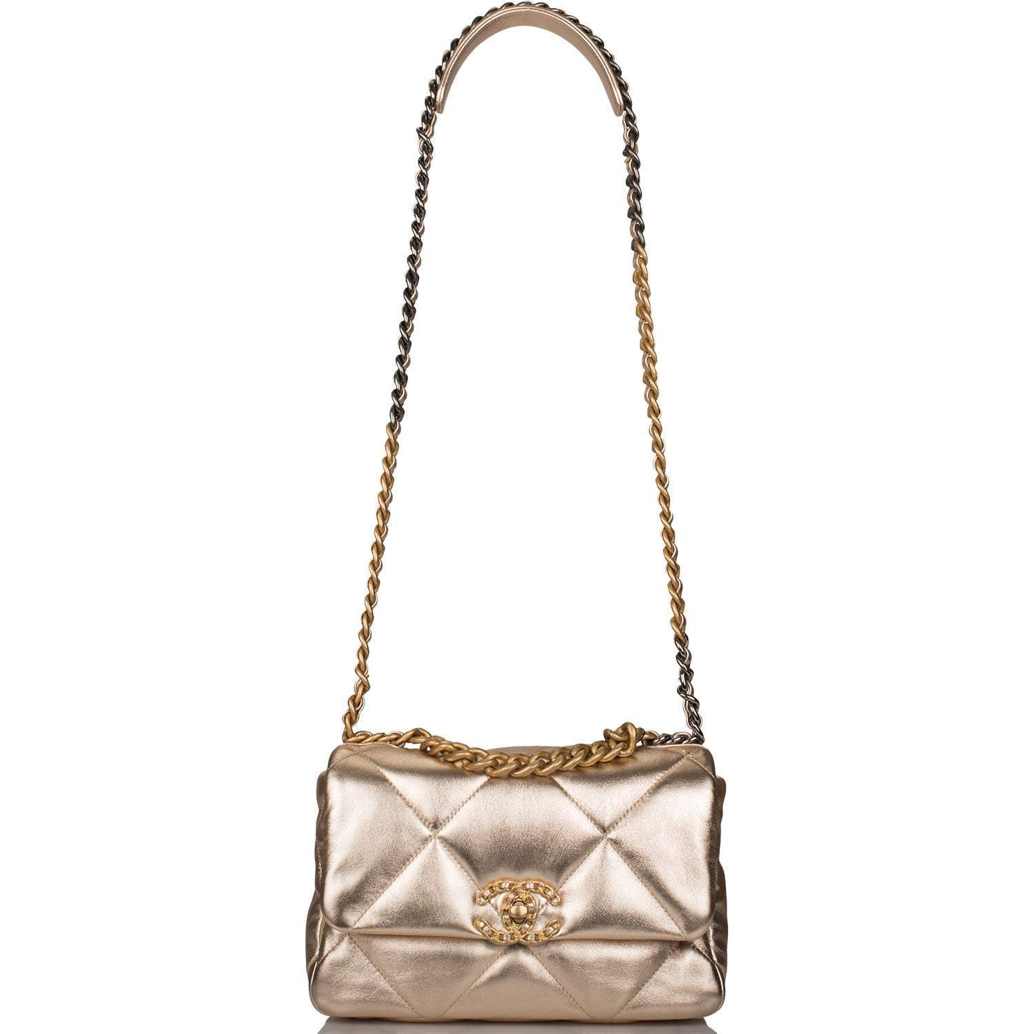 Chanel Gold Metallic Quilted Lambskin Medium 19 Flap Bag Mixed Hardware