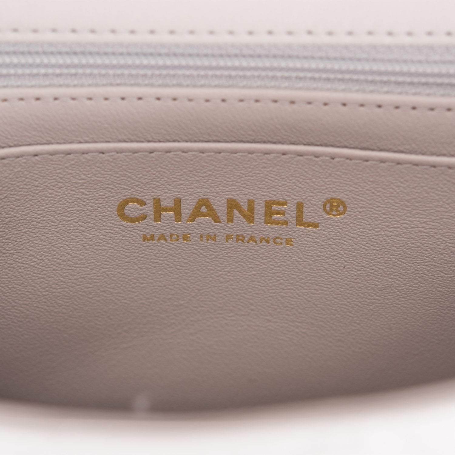 Chanel Grey Quilted Lambskin Rectangular Mini Flap Bag with Top Handle Antique Gold Hardware