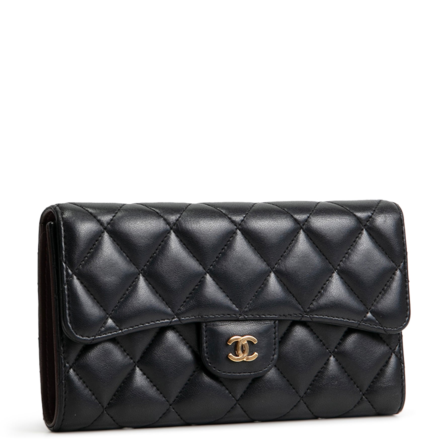 - Authentic Chanel Quilted Lambskin Classic Flap Continental Trifold Wallet