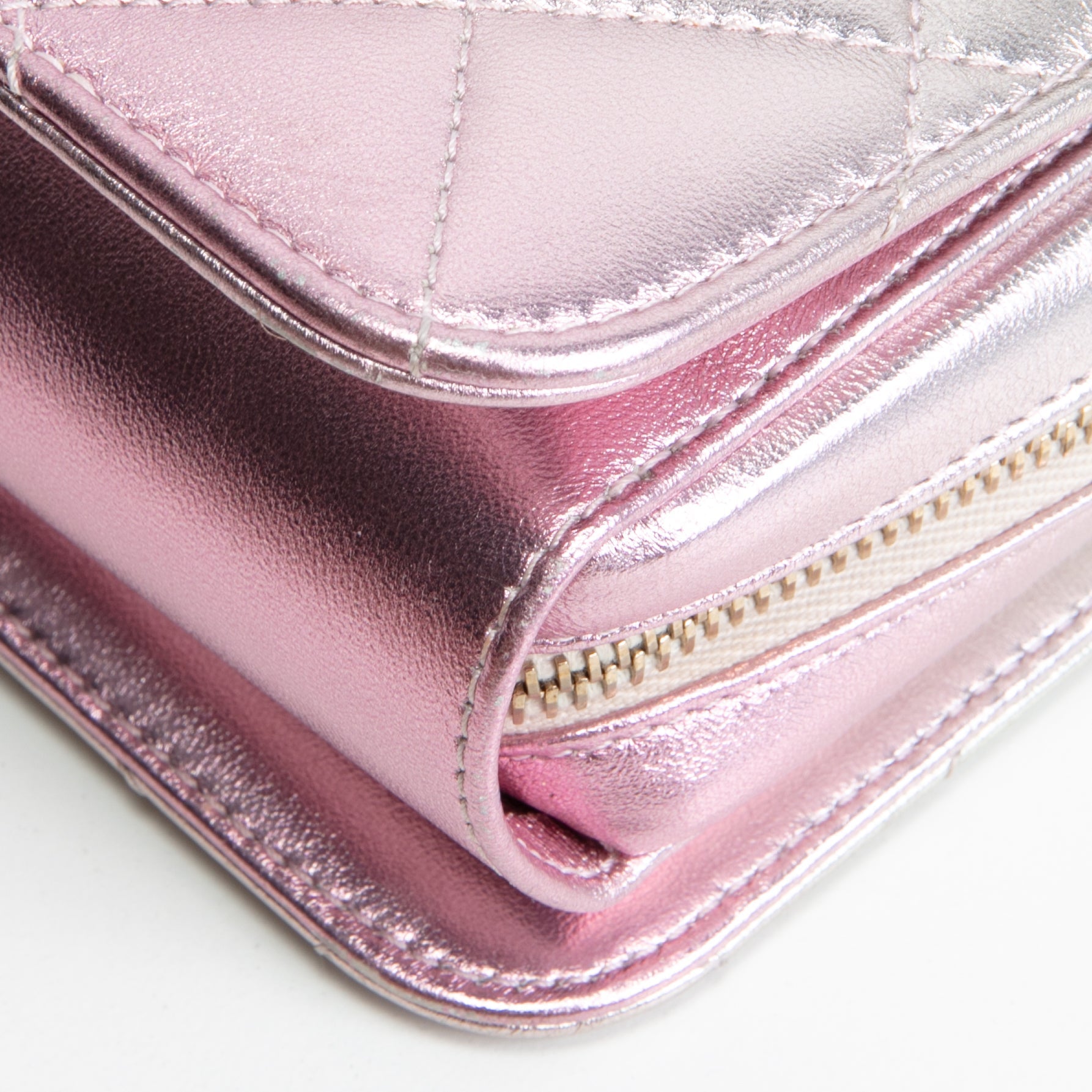 - Authentic Chanel Like A Wallet Flap - Metallic Pink