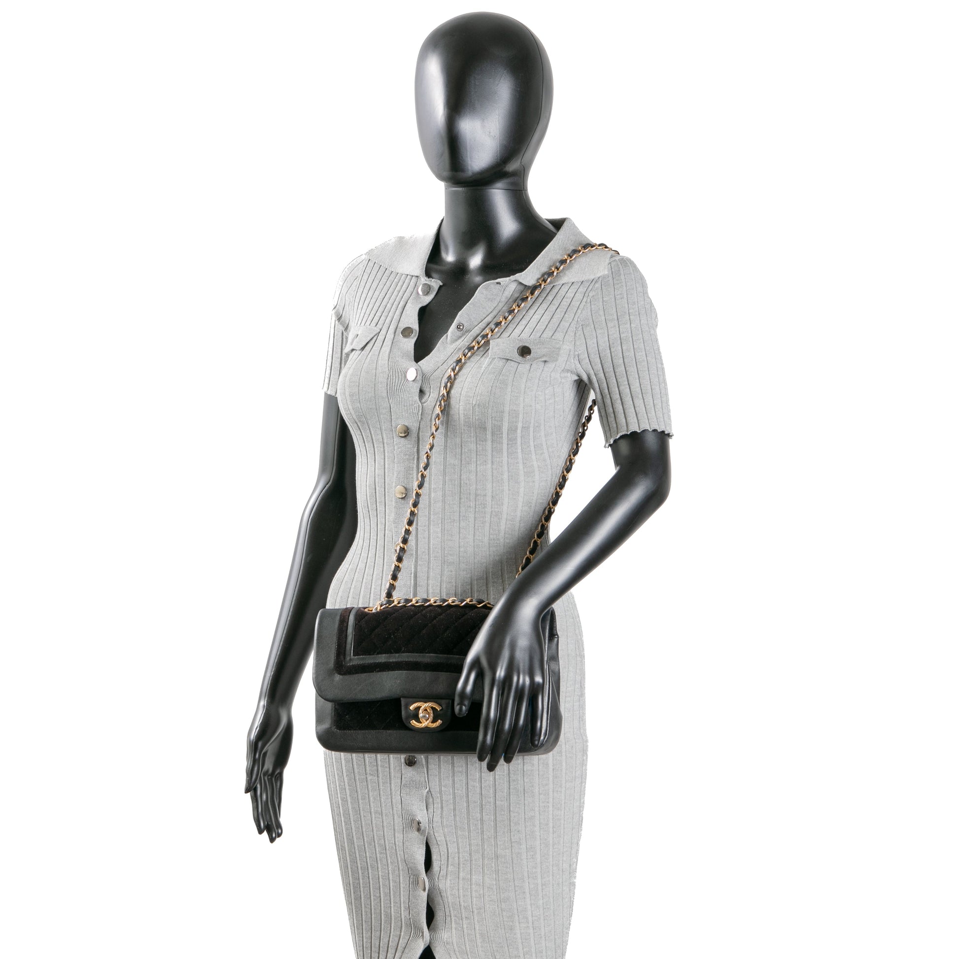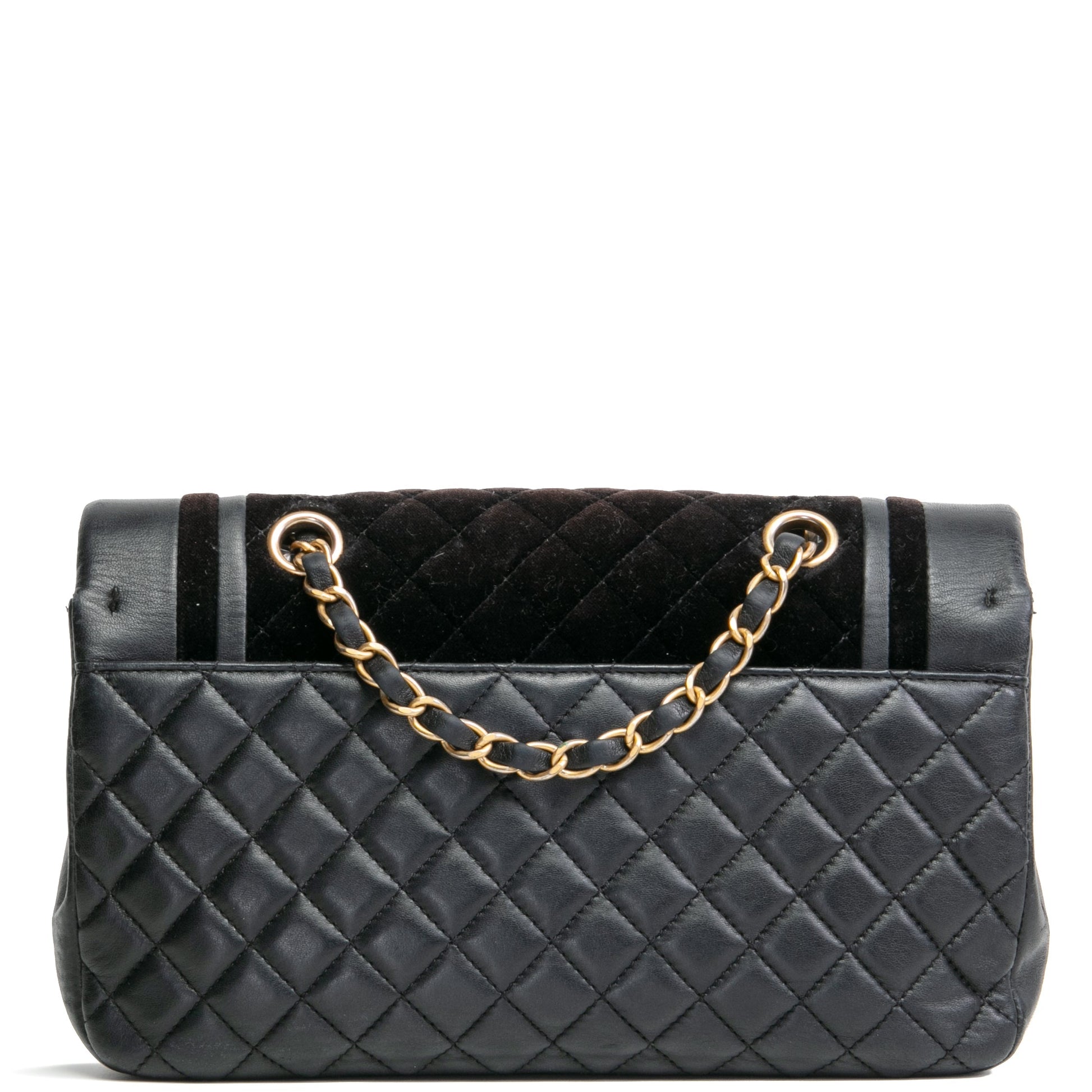 - Authentic Chanel Paris - Cosmopolite Velvet & Lambskin Medium Flap - Black