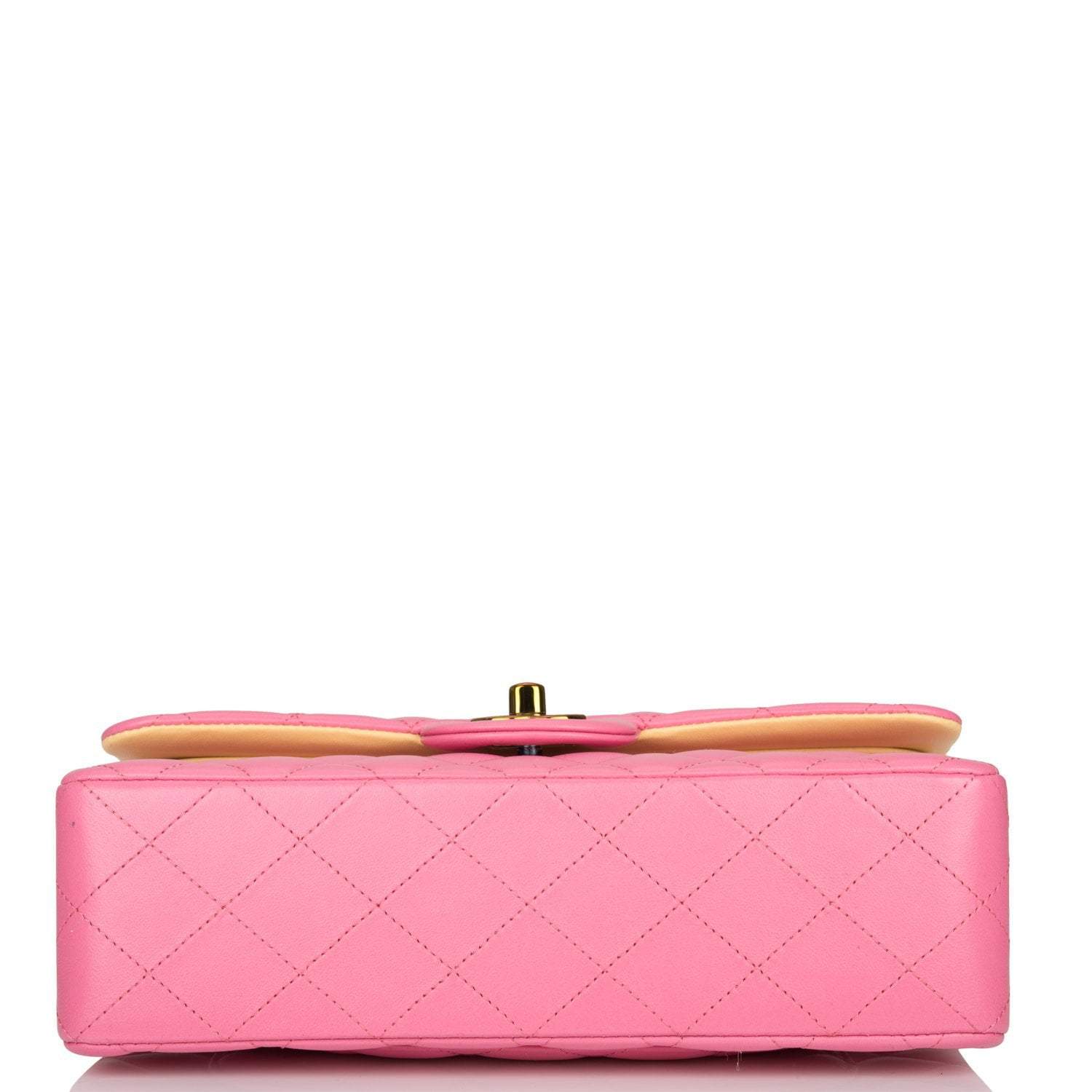 Chanel Pink Quilted Lambskin Small Classic Double Flap Bag Rainbow Hardware