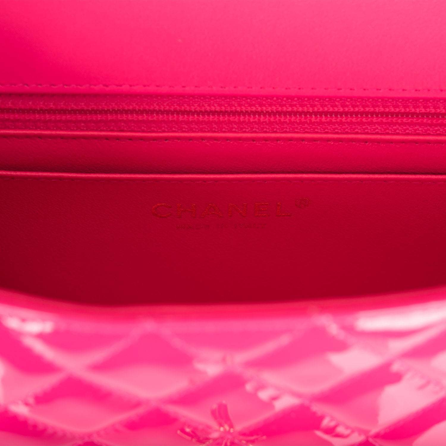 Chanel Pink Quilted Patent Rectangular Mini Classic Flap Bag Light Gold Hardware
