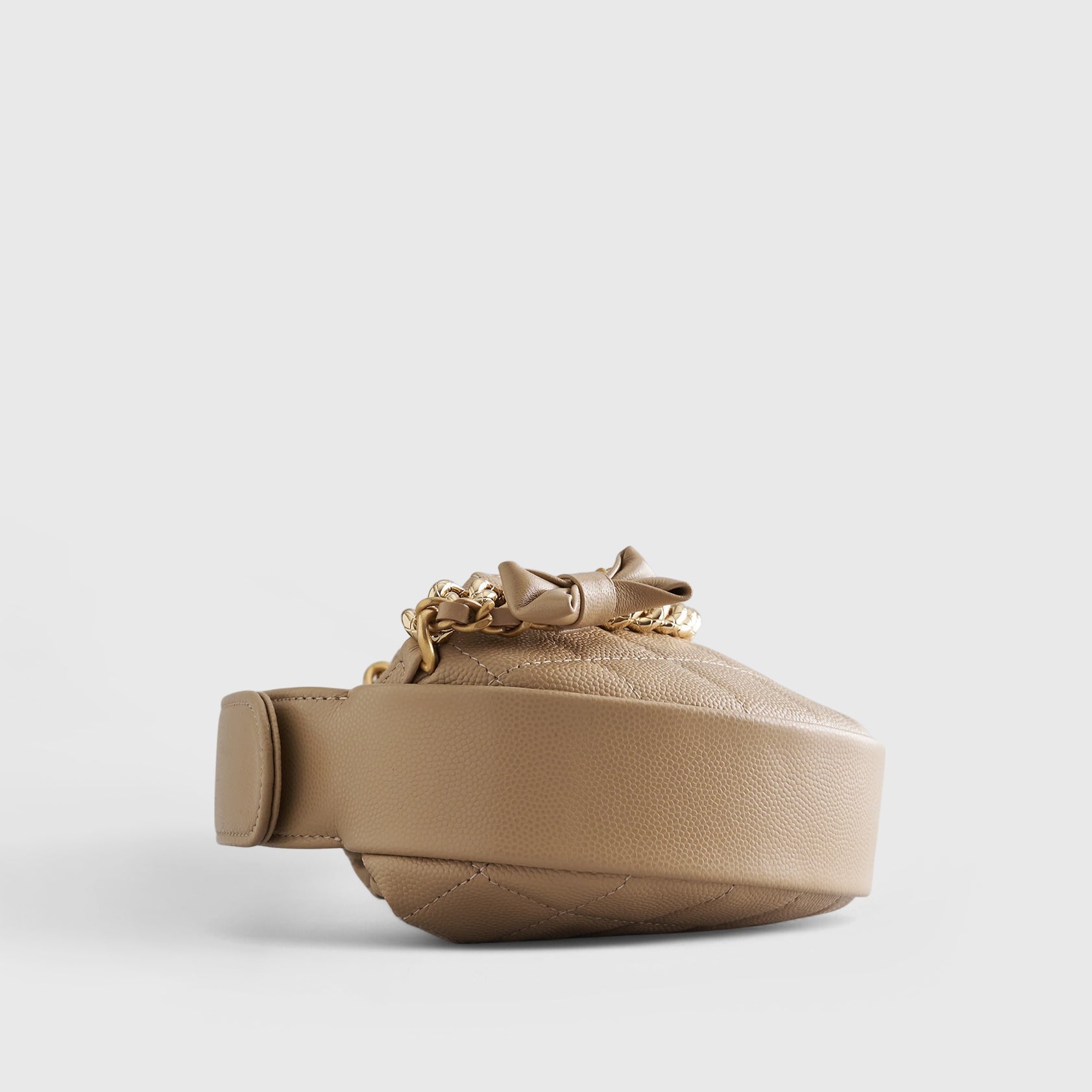 Chanel Quilted Circle Pouch Bag Beige w/ Chain Gold Hardware