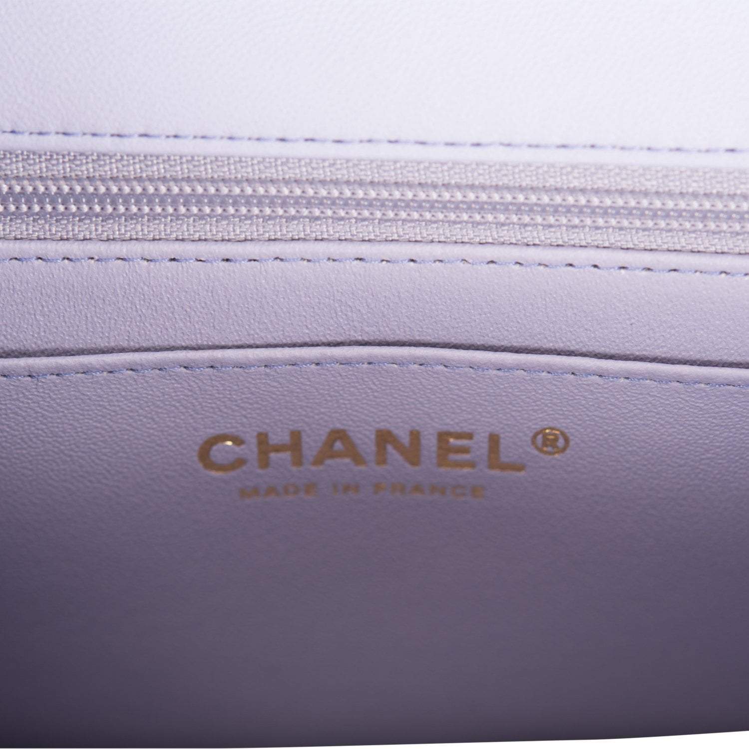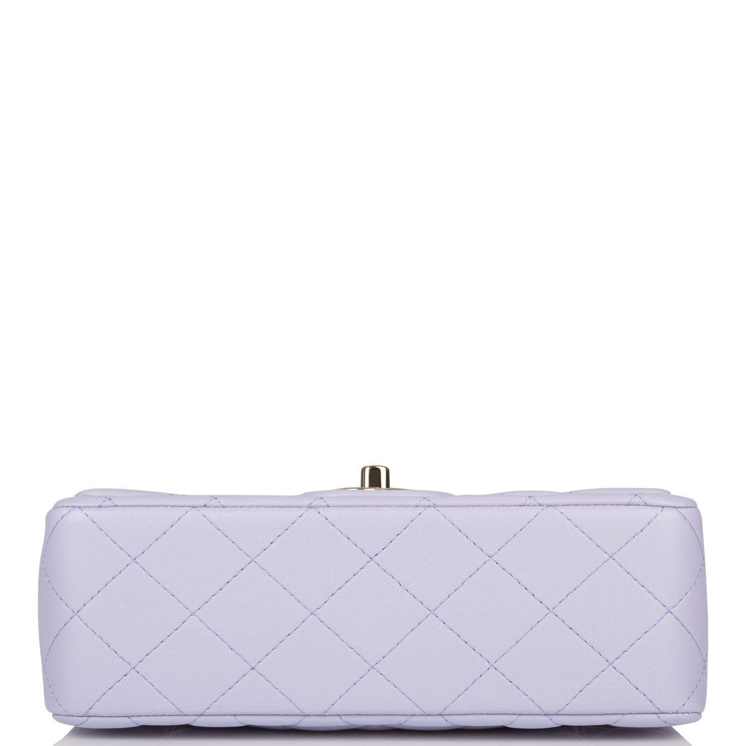 Chanel Rectangular Mini Flap Bag with Top Handle Lavender Quilted Lambskin Light Gold Hardware
