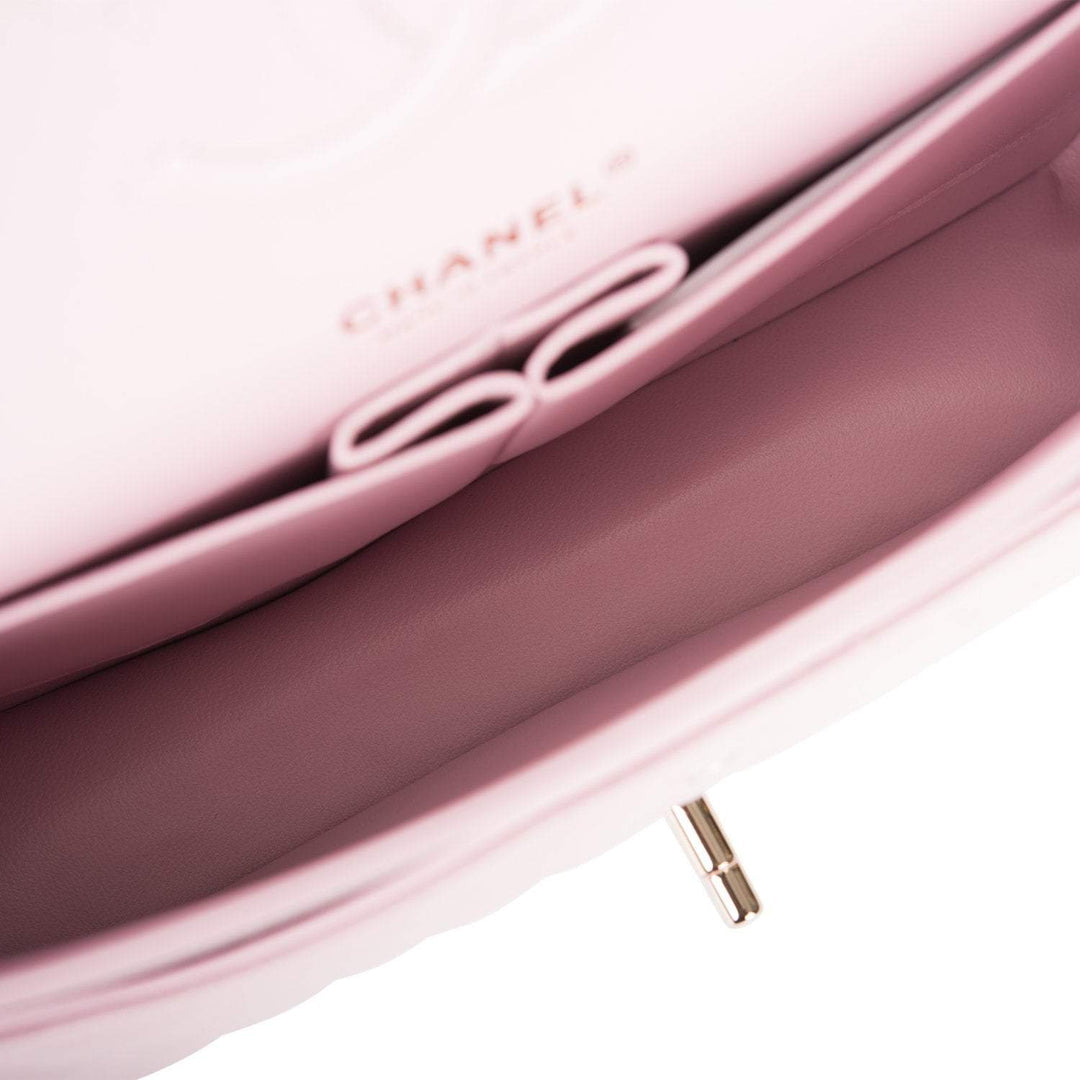 Chanel Rose Clair Quilted Caviar Medium Classic Double Flap Bag Light Gold Hardware