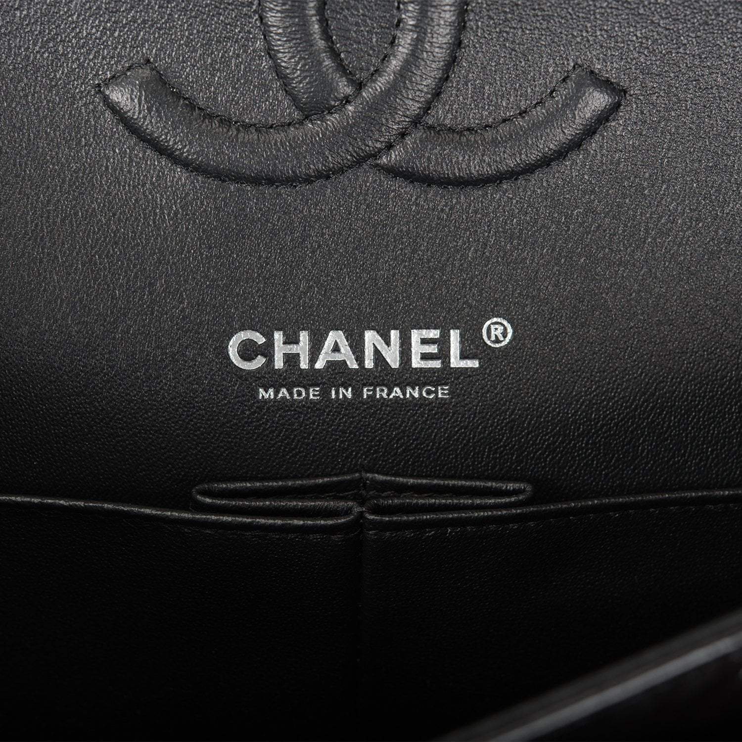 Chanel Shiny SO Black Crumpled Calfskin Quilted Medium Classic Double Flap Bag Black Hardware