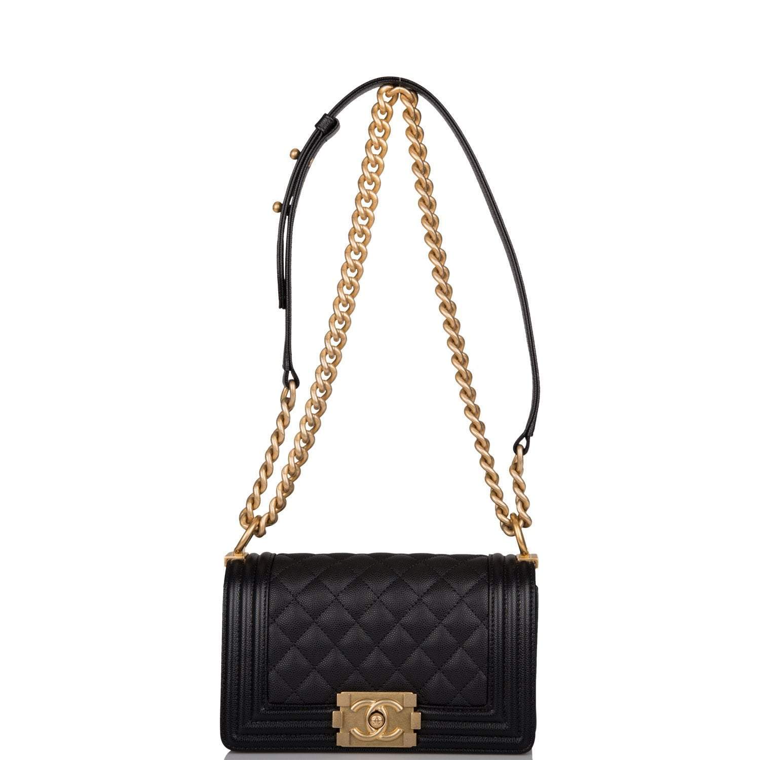 Chanel Small Boy Bag Black Caviar Antique Gold Hardware