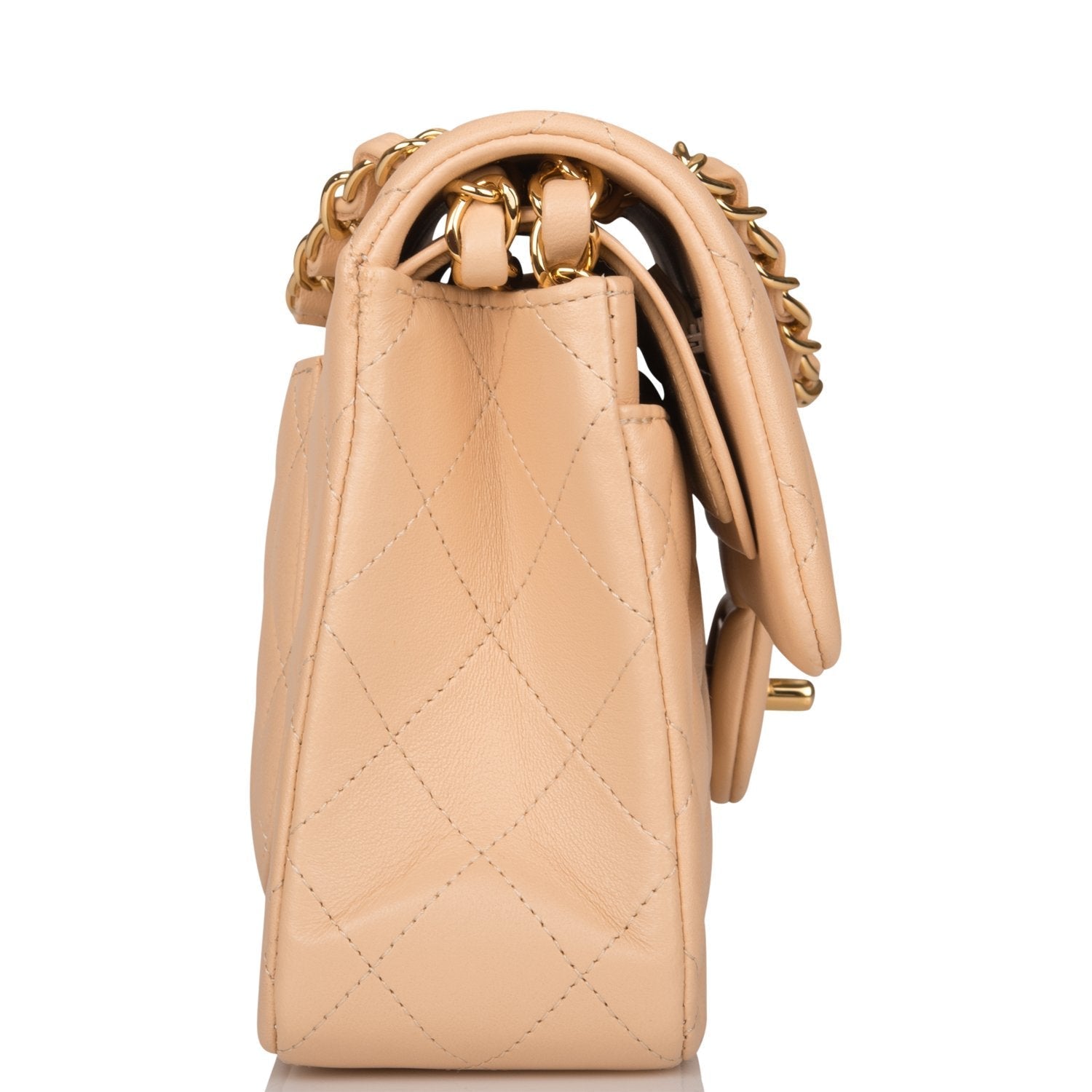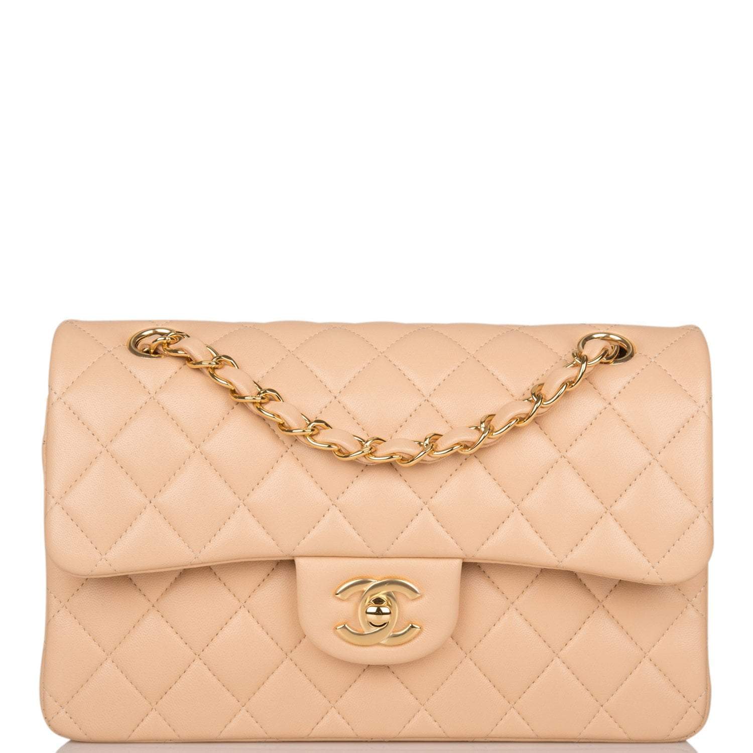 Chanel Small Classic Double Flap Bag Beige Lambskin Gold Hardware
