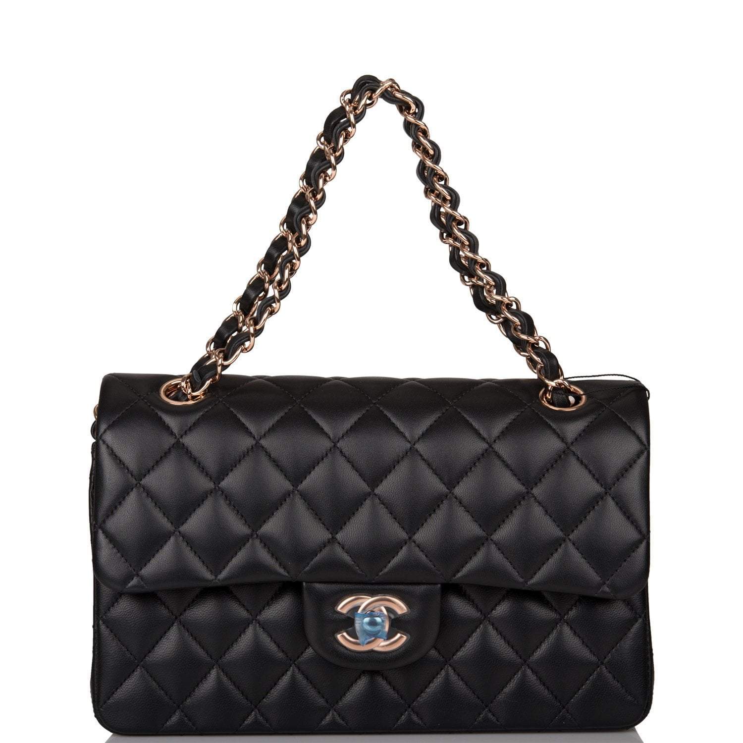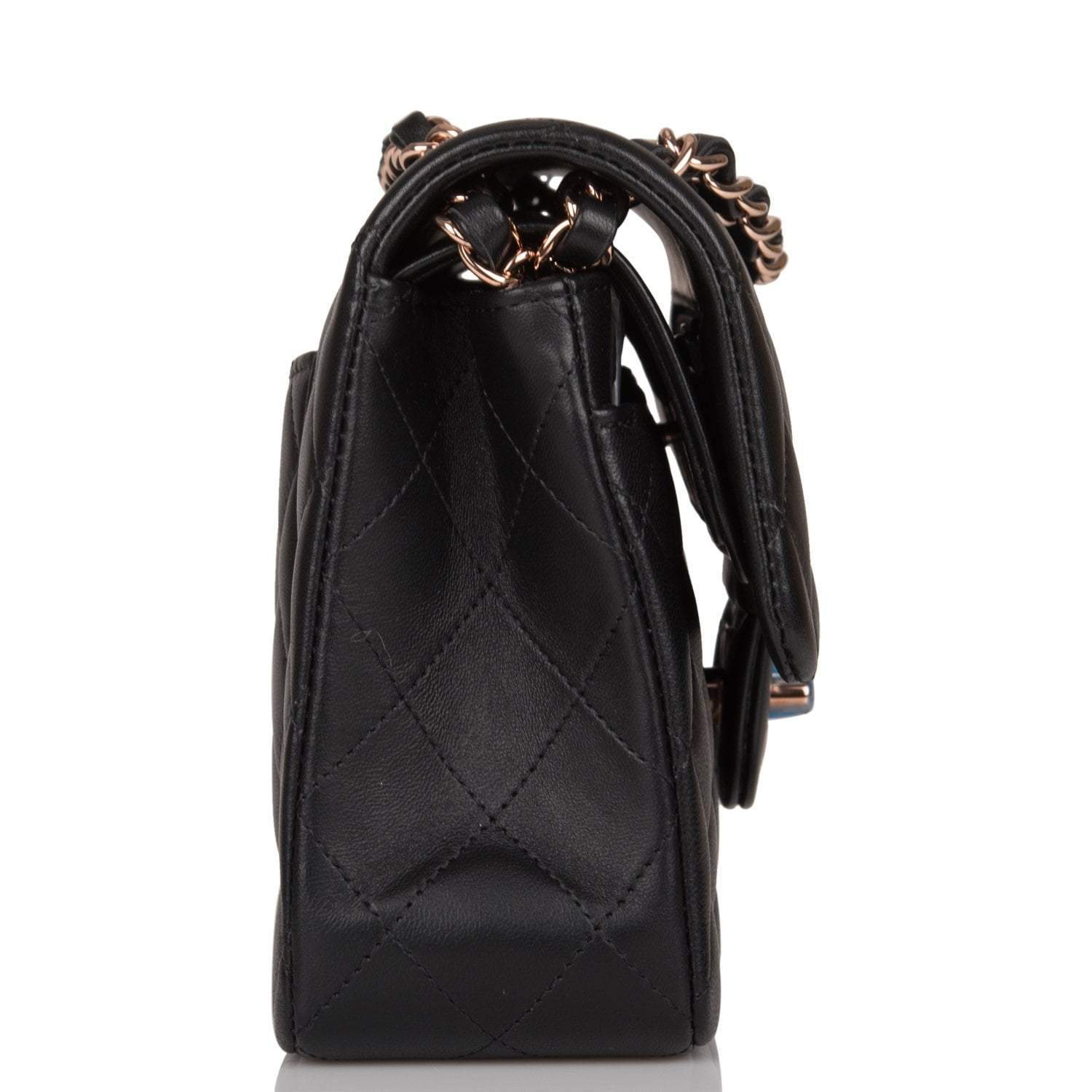 Chanel Small Classic Double Flap Bag Black Lambskin Rose Gold Hardware