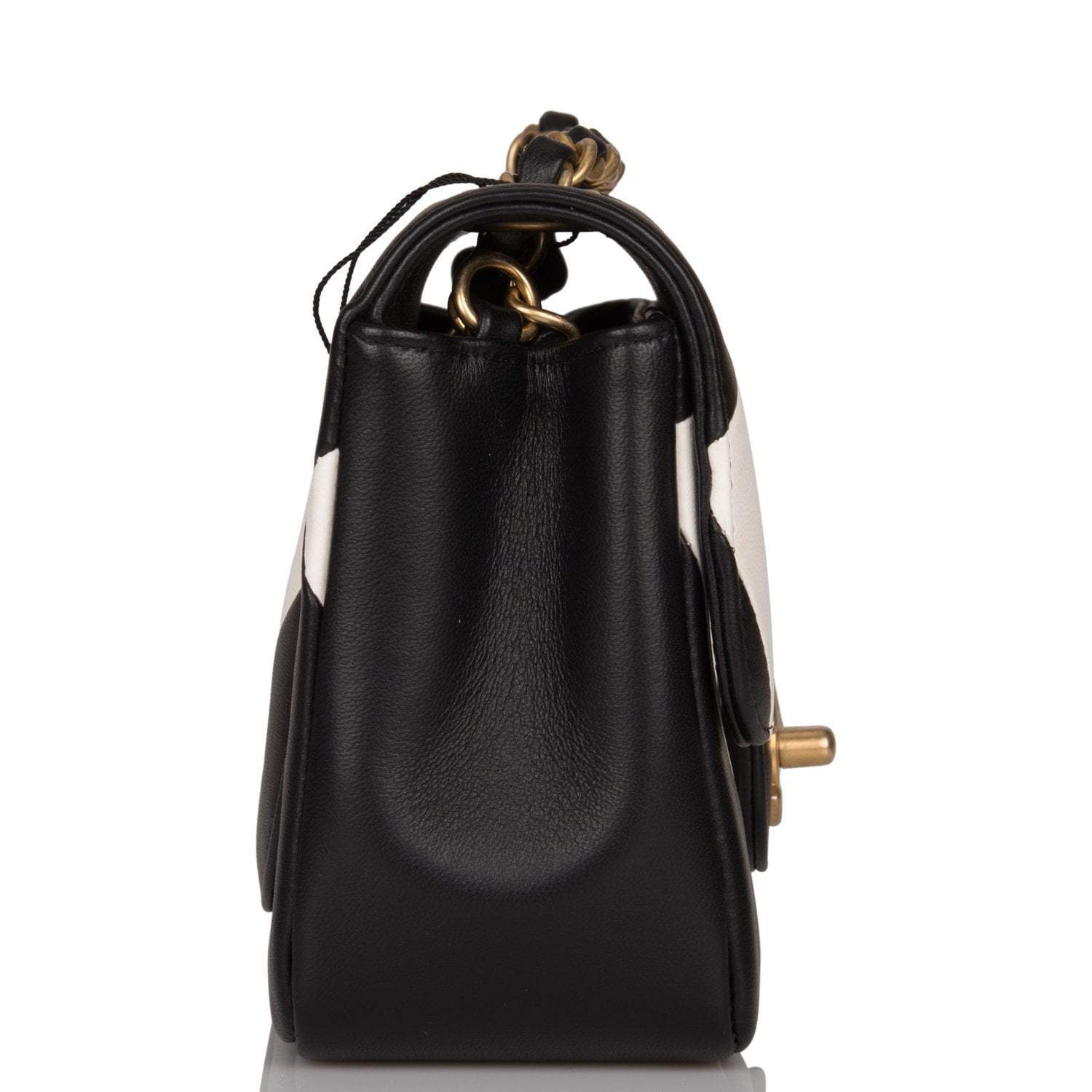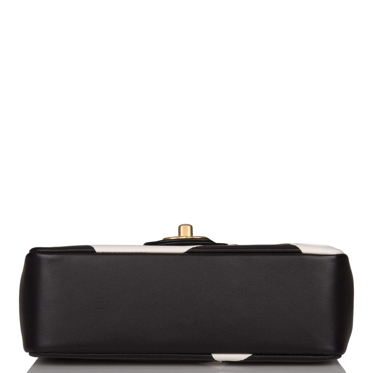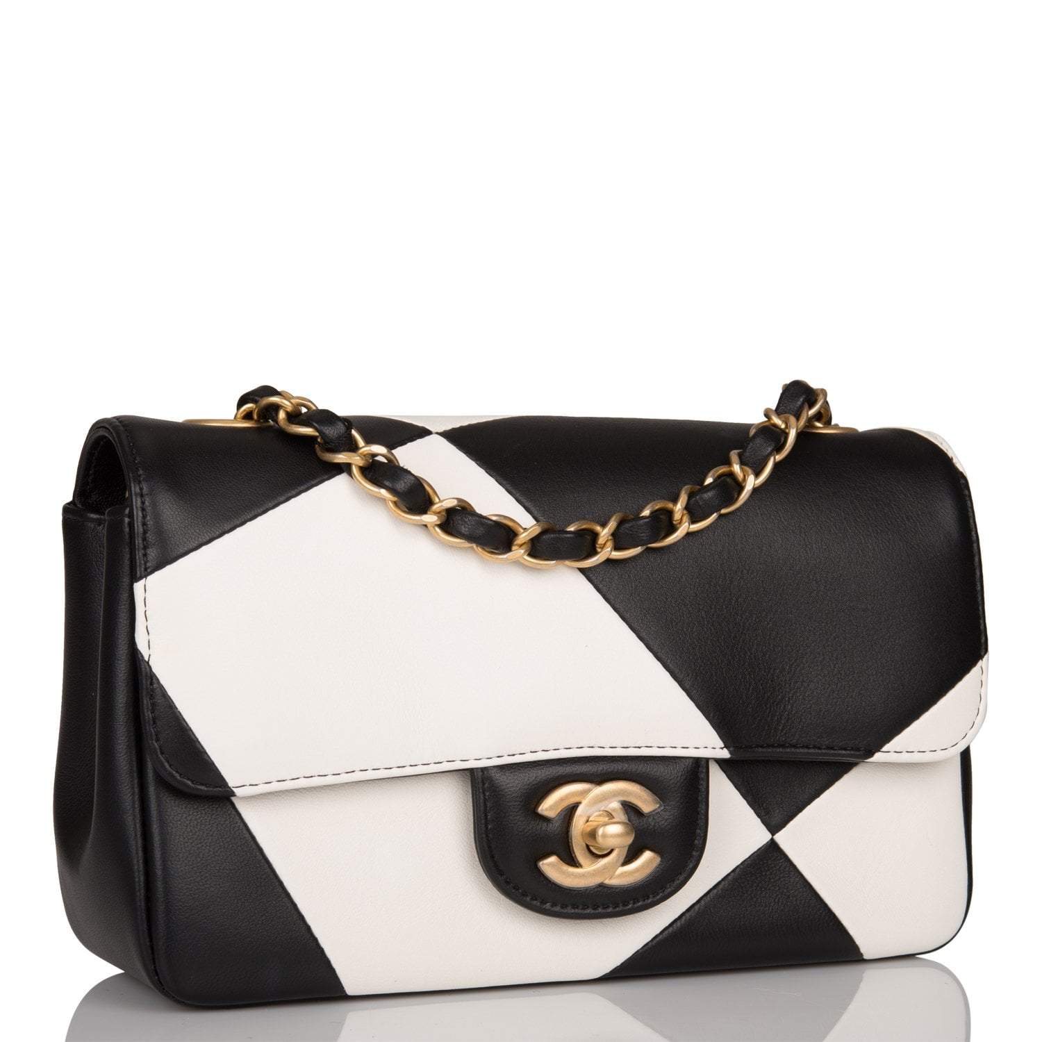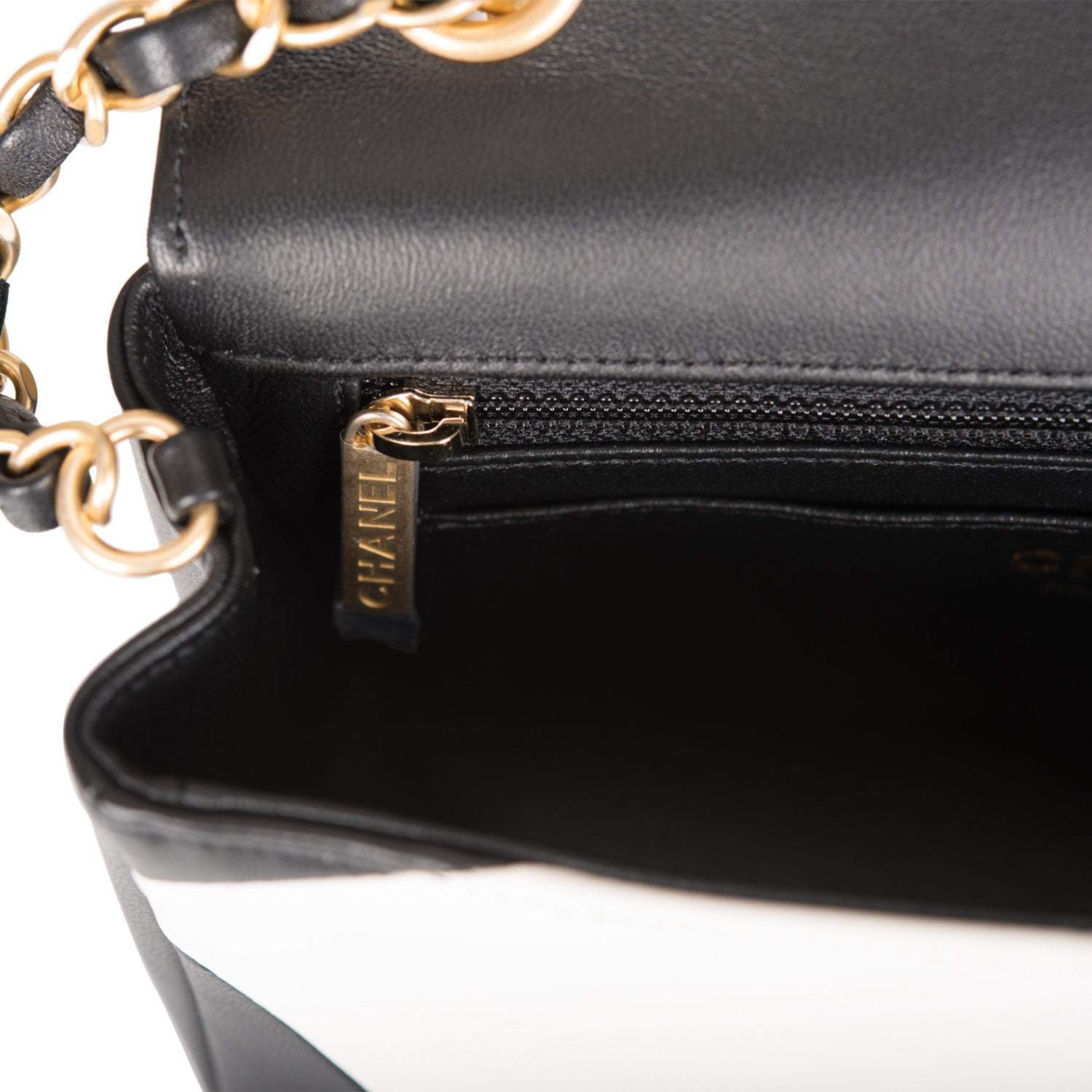 Chanel White and Black Geometric Lambskin Rectangular Mini Classic Flap Bag Antique Gold Hardware