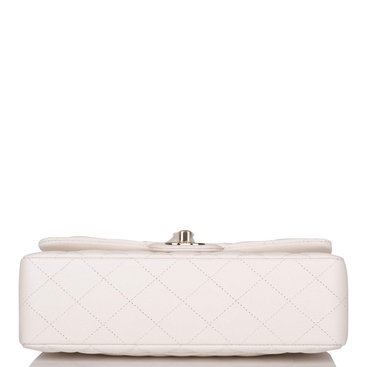 Chanel Small Classic Double Flap White Caviar Light Gold Hardware