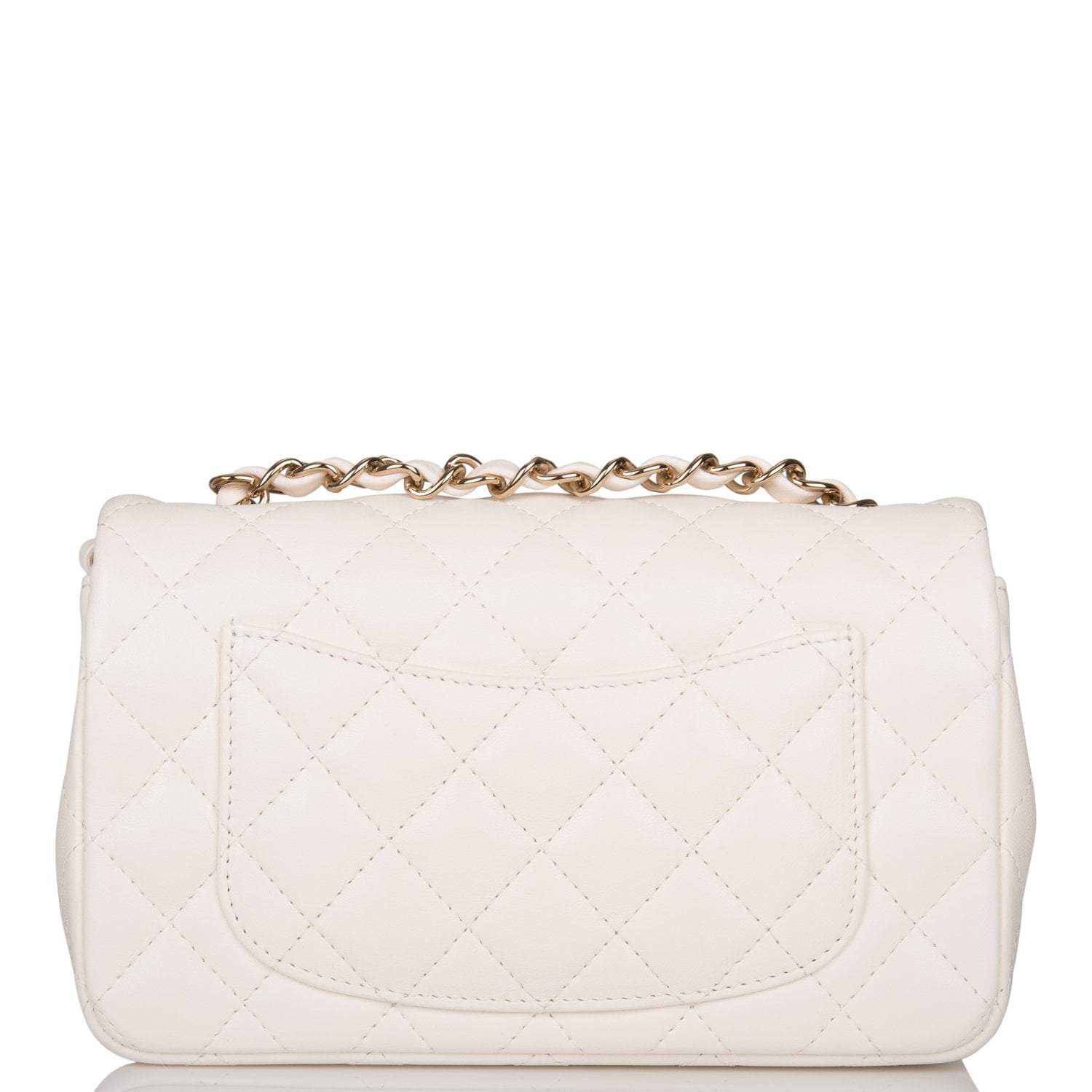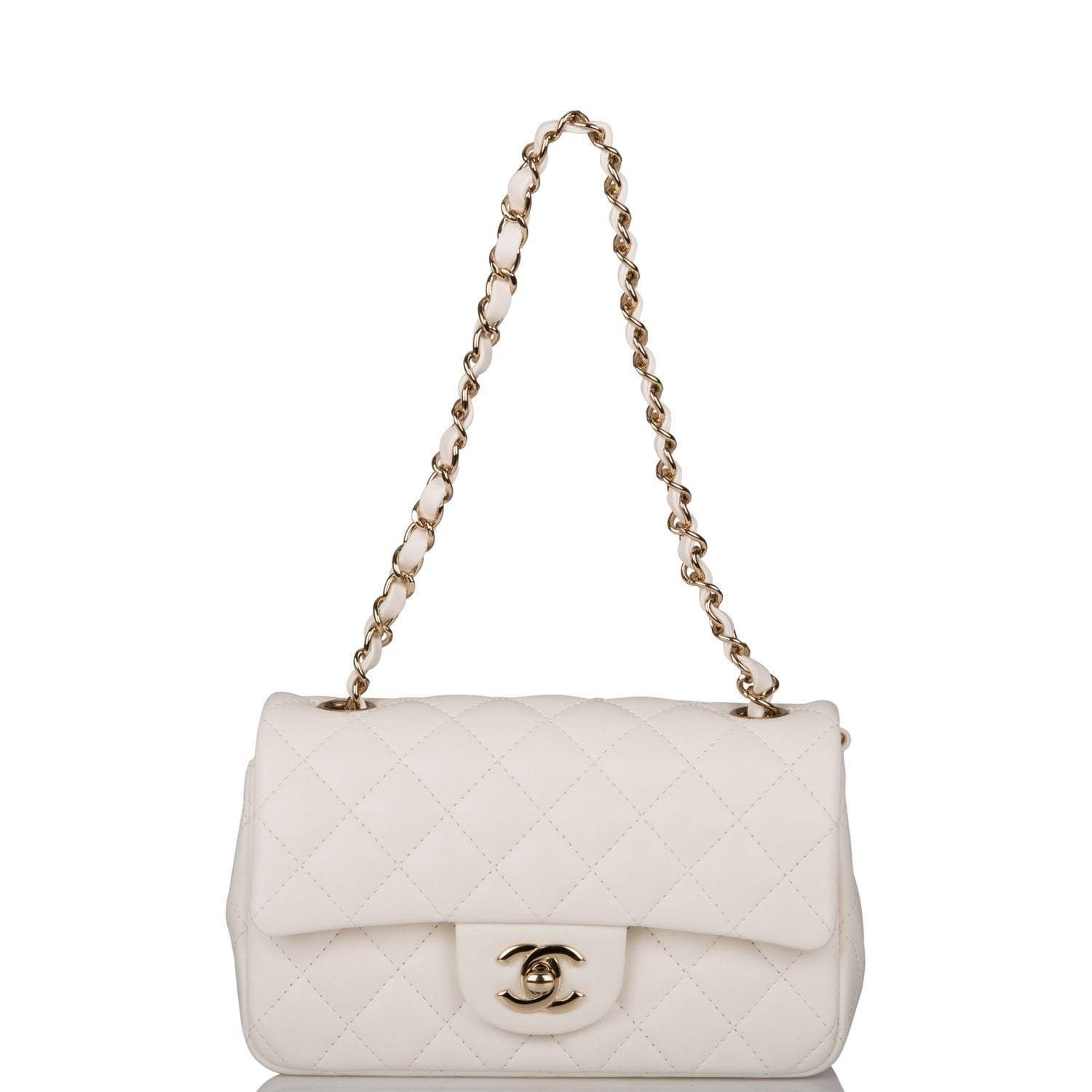 Chanel White Quilted Lambskin Rectangular Mini Classic Flap Bag Light Gold Hardware