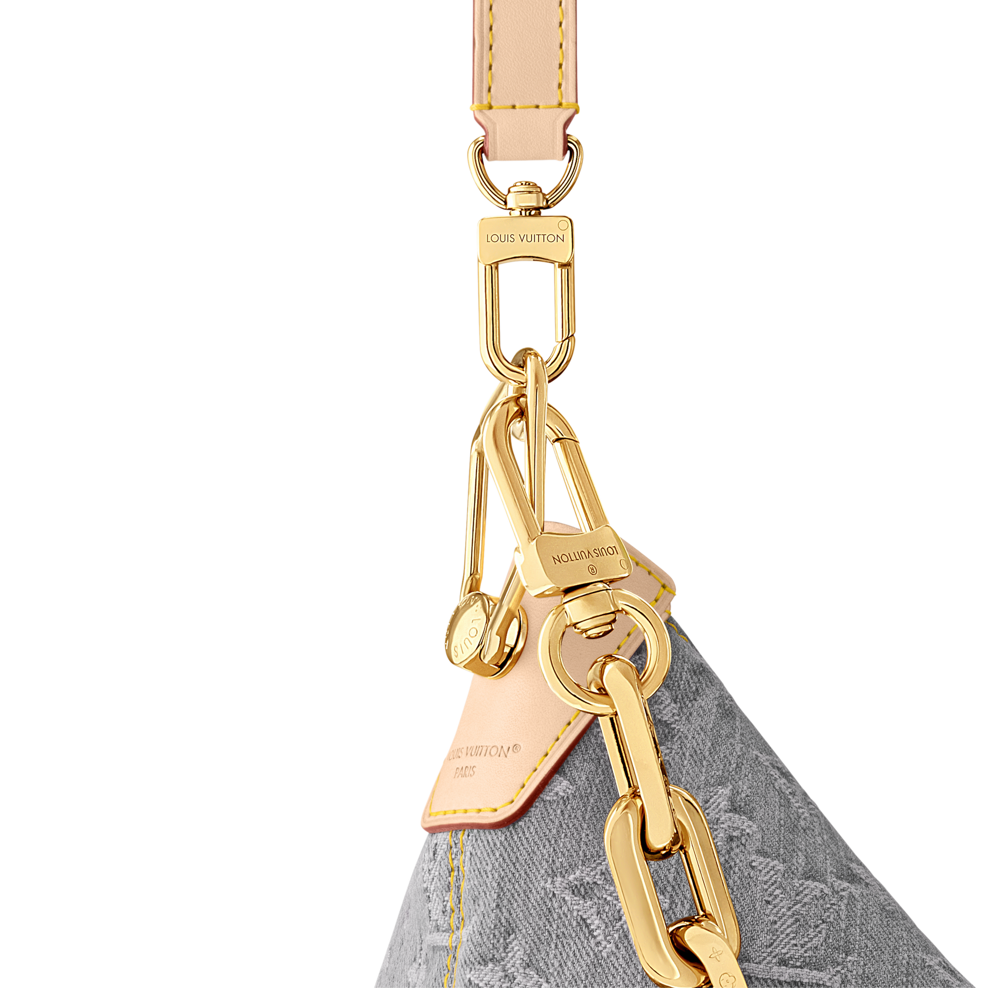 This Coussin MM Hobo bag celebrates the return of the House’s iconic Monogram Denim pattern, which originally launched in 2005. It is crafted from organic cotton and woven with black and white threads that are bleached to create a vintage-inspired finish. The capacious design is elevated with light gold-colour hardware and includes a removable zipped pocket to keep smaller items secure. Wear it cross-body, on the shoulder or carried by hand.