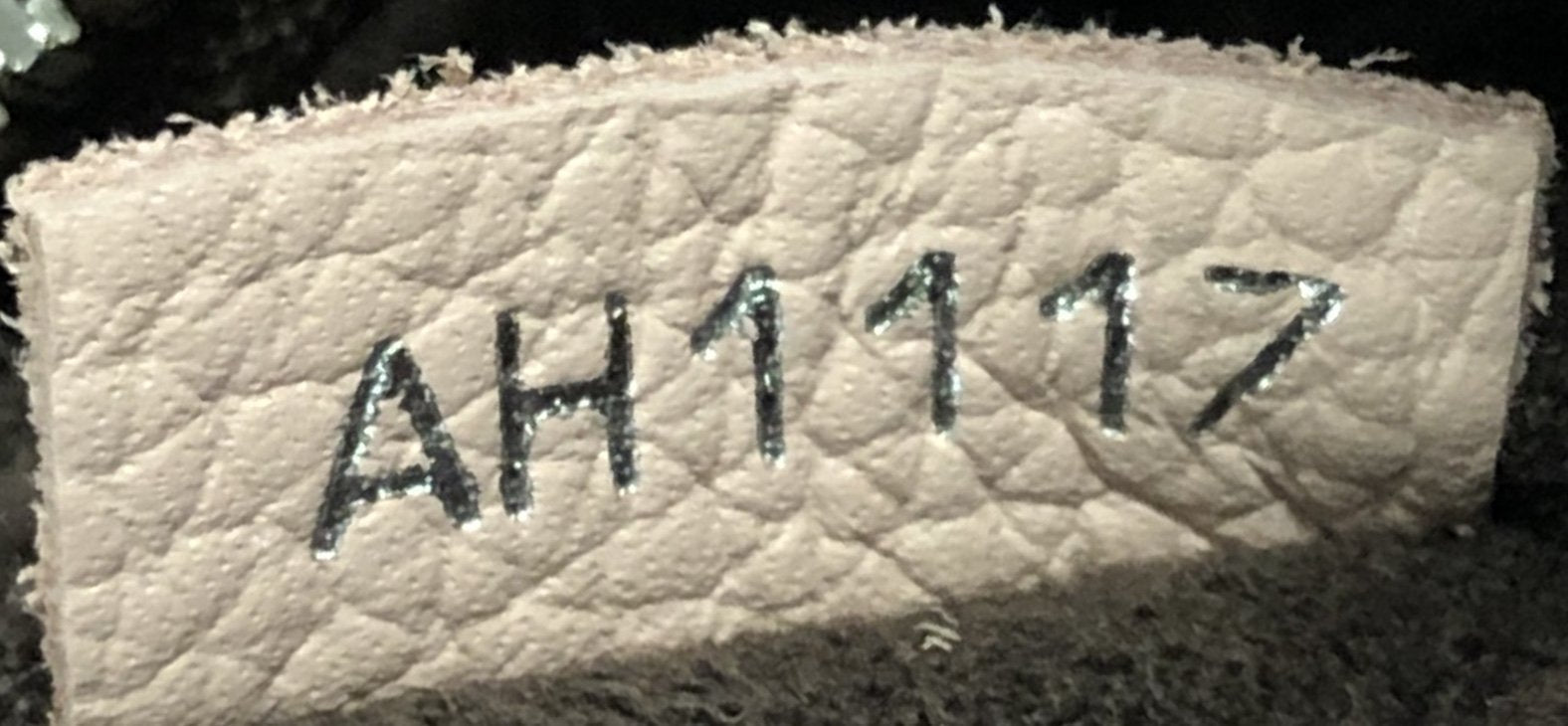 Louis Vuitton 'Babylone PM' hobo in pink Mongram Mahina leather with dark brown braided handle and detachable leather shoulder strap. Lined in taupe alcantara with two open pockets against the front and a zipper pocket against the back.