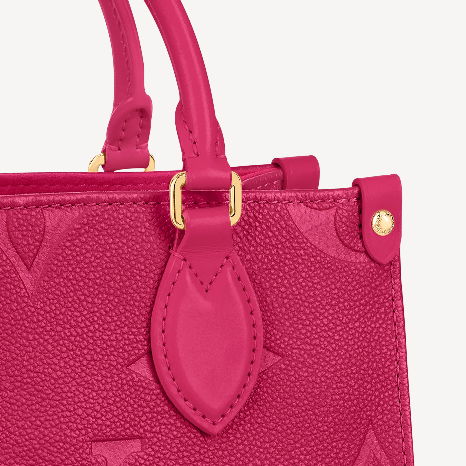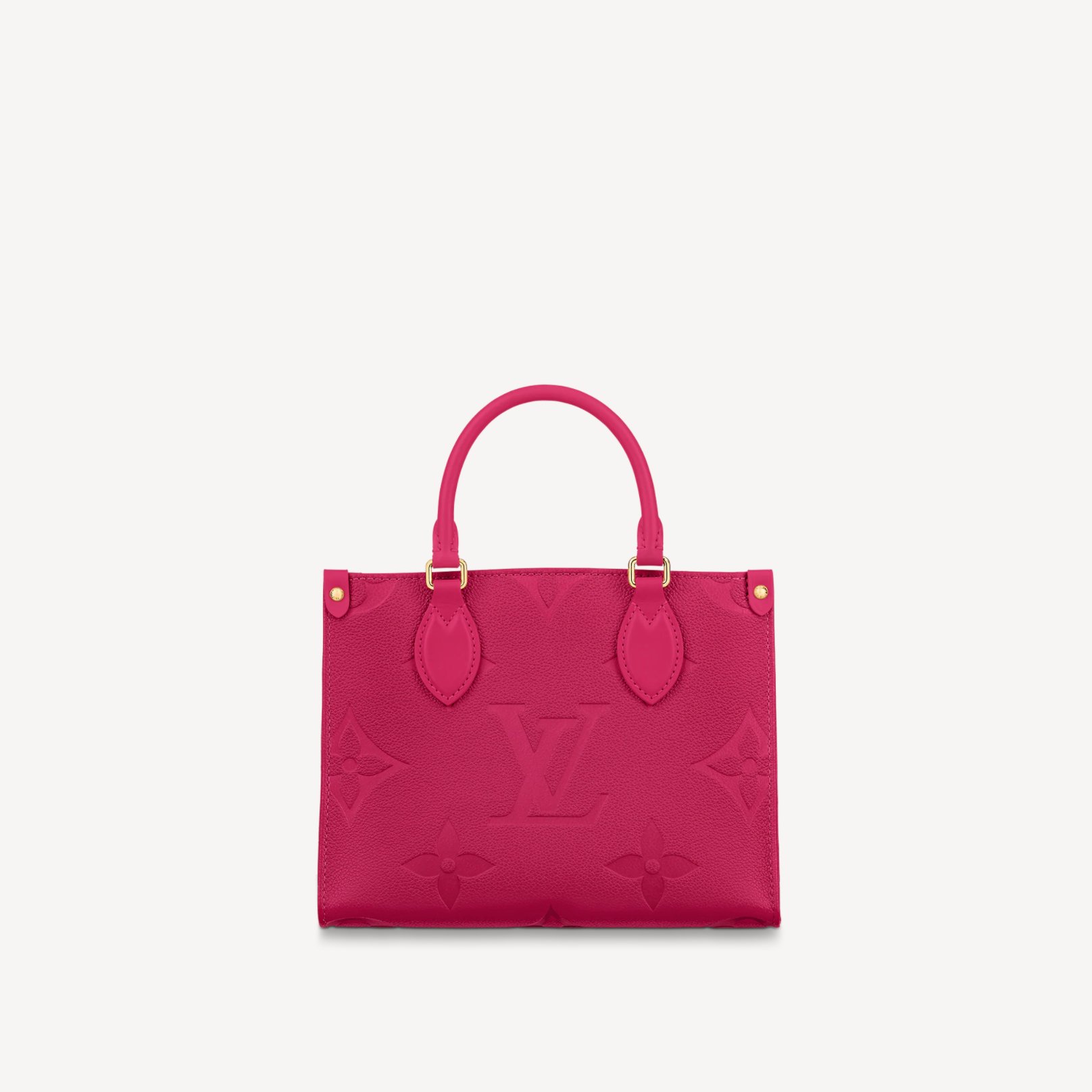Fuchsia Embossed Grained Leather On-the-Go Tote Bag, PM Size