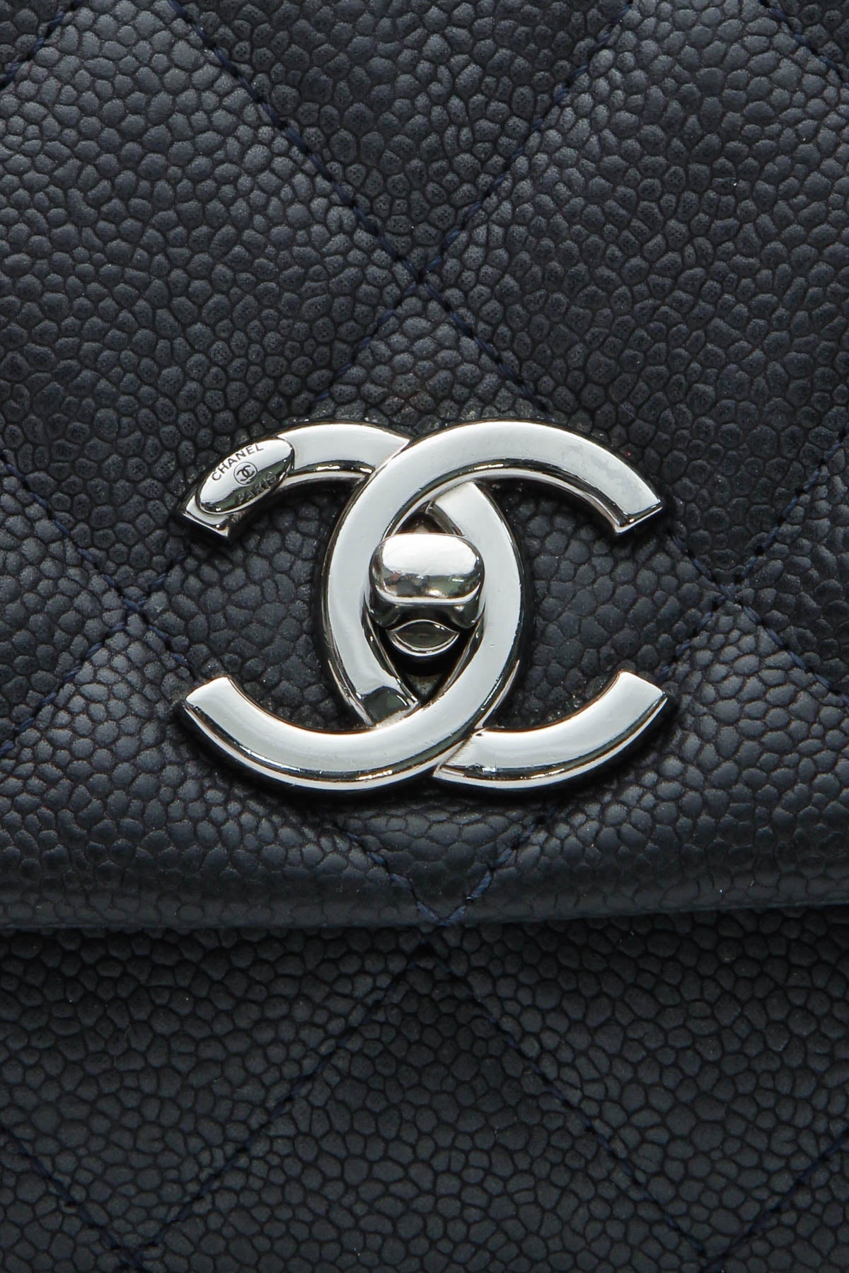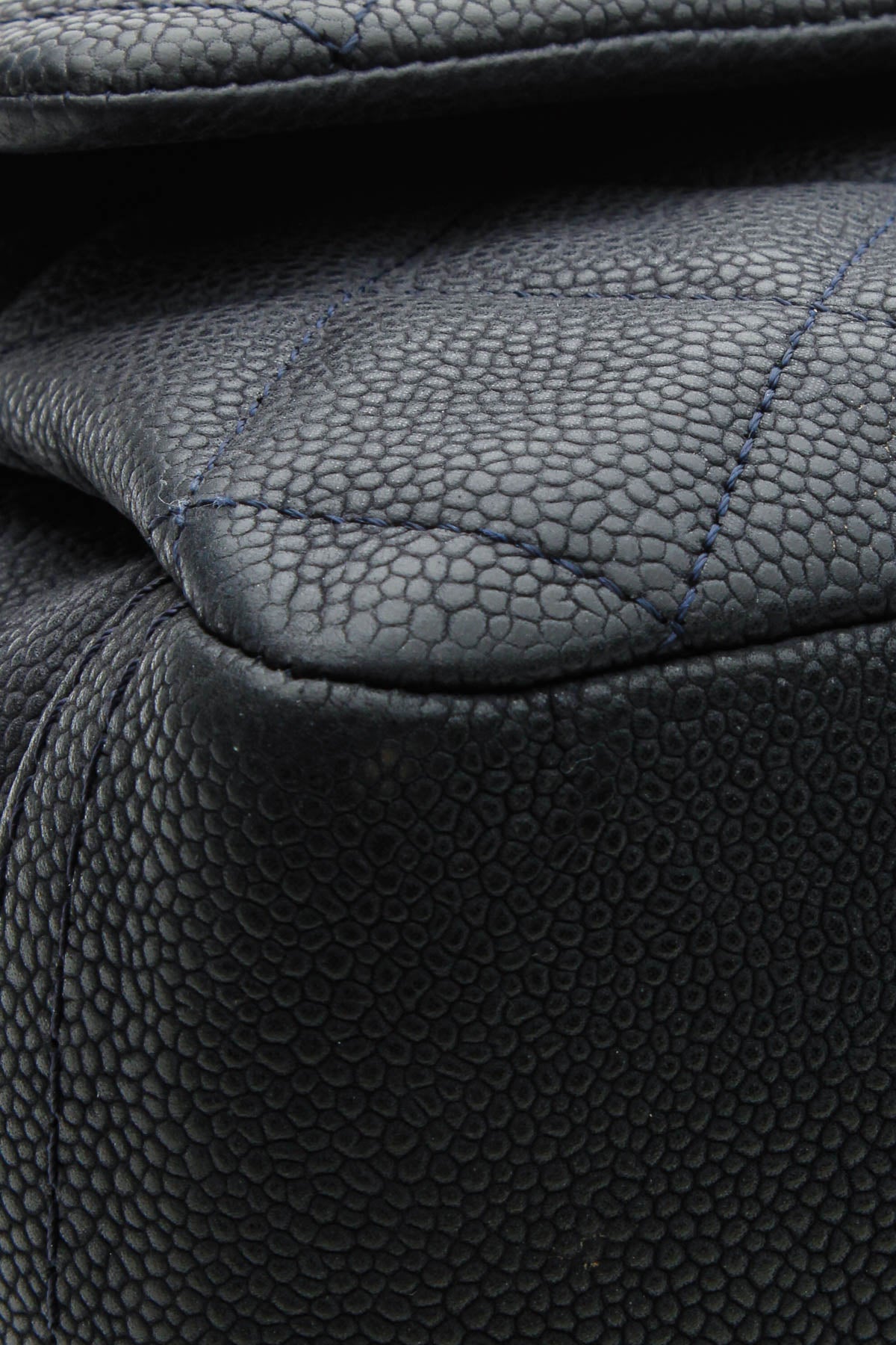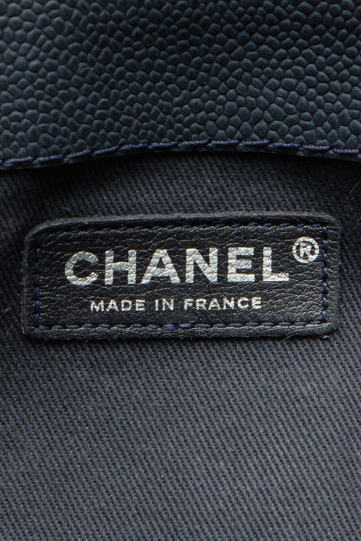 This authentic Chanel Accordion Flap bag is a modern take on the classic Chanel quilting style. Befitting any occasion or generation, this ageless beauty features a versatile and navy matte caviar leather exterior. Inside, a compartment designed with convenience in mind presents stylish storage for both daytime and casual evening attire.